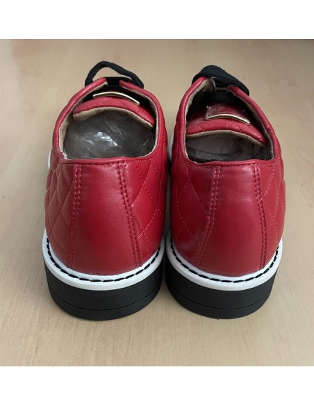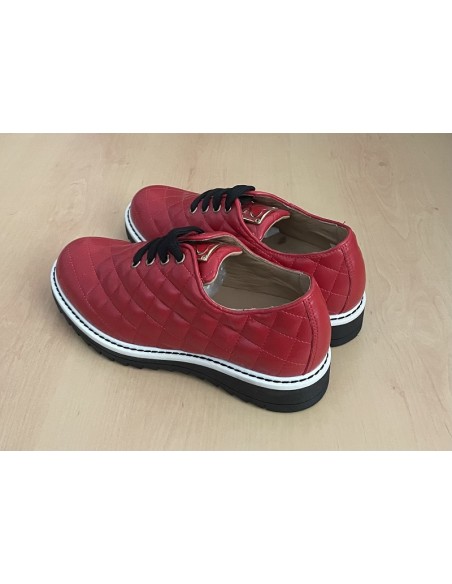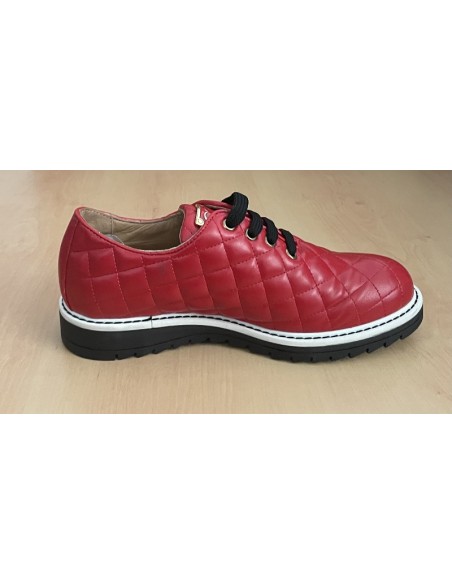 Chaussures à lacets, coutures apparentes sur la tige formant des petits losanges.
