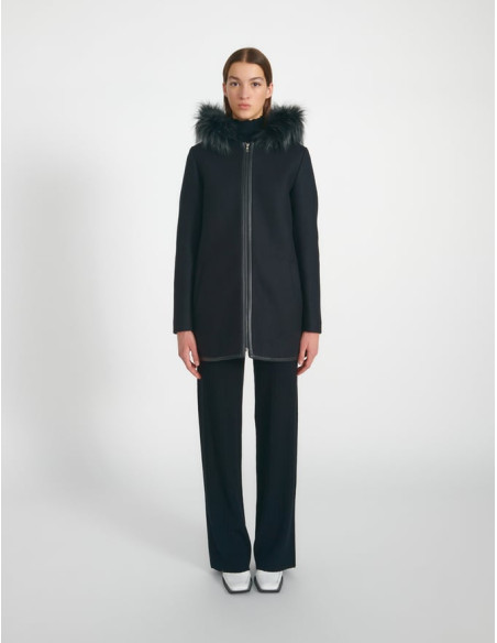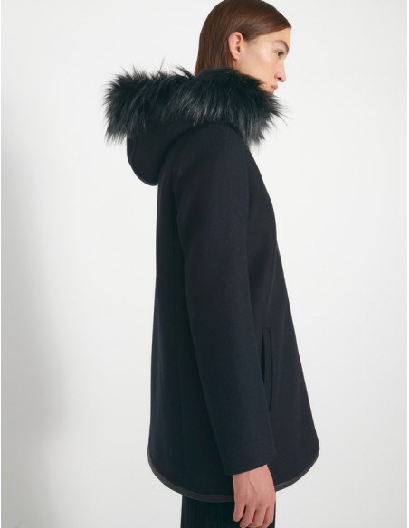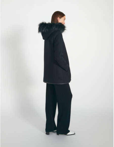 Duffle-coat capuche à fourrure amovible noir