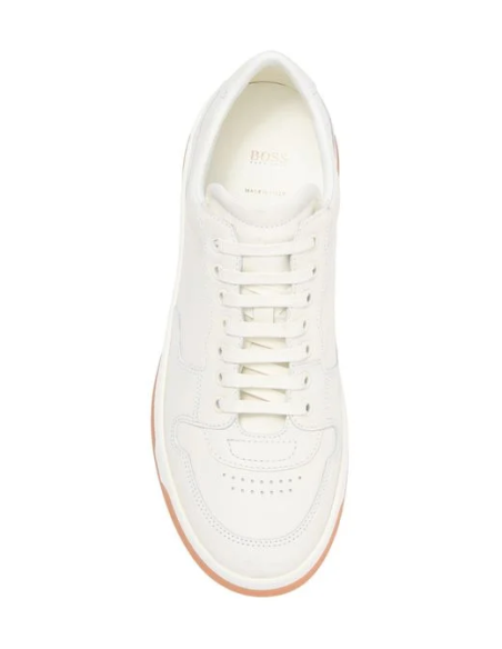 Des chaussures élégantes signées BOSS, confectionnées en Italie. Ces baskets basses en cuir lisse bruni à la main comportent une semelle en gomme et sont ornées d’un logo BOSS sur le contrefort.