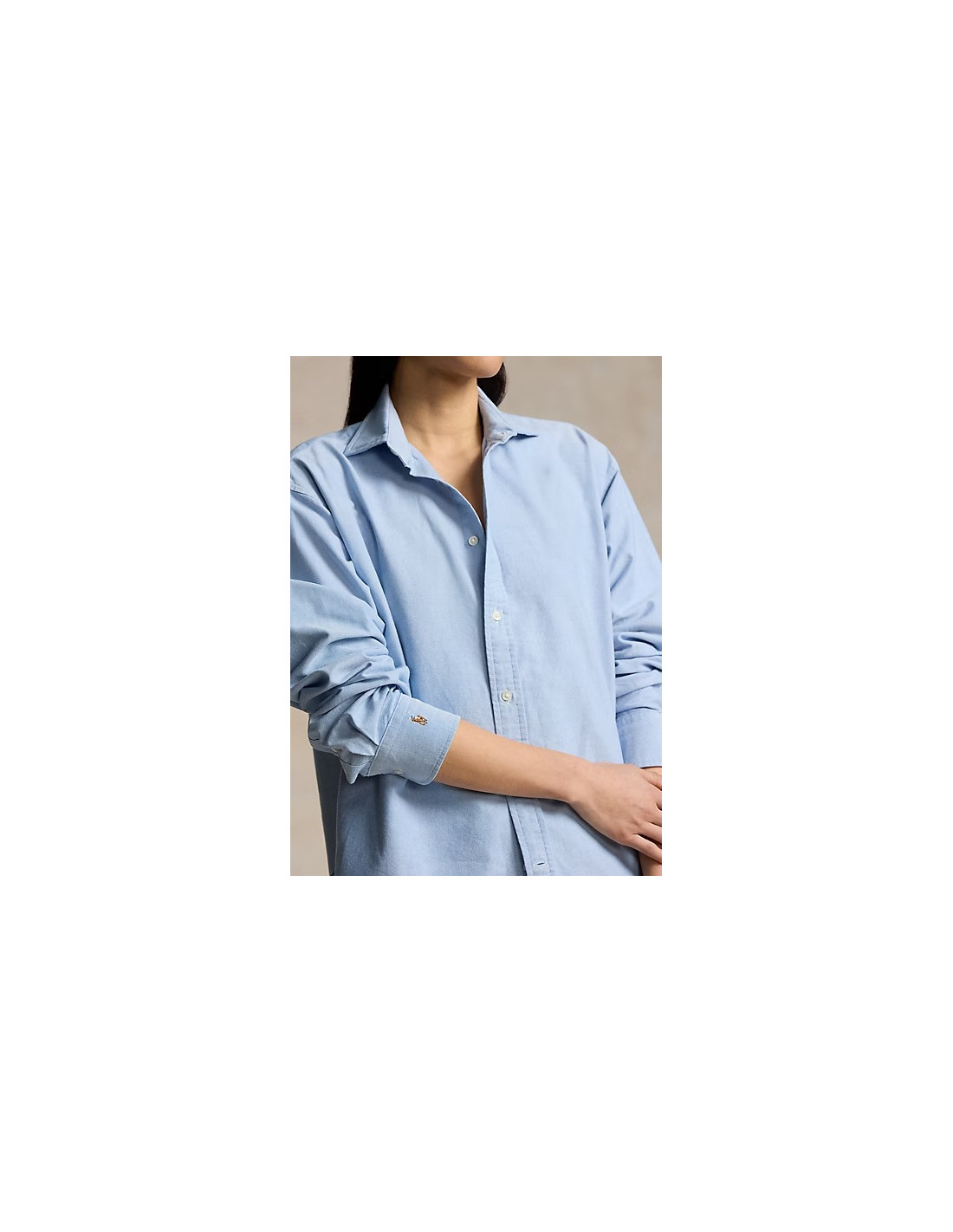 Confectionnée dans le coton Oxford distinctif de Ralph Lauren, cette chemise décontractée est ornée de boutons en nacre et brodée de notre poney distinctif multicolore sur le poignet droit. L'emblématique logo Polo Player est brodé au niveau du poignet droit, aux couleurs originales