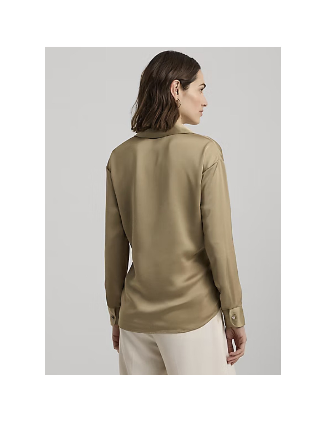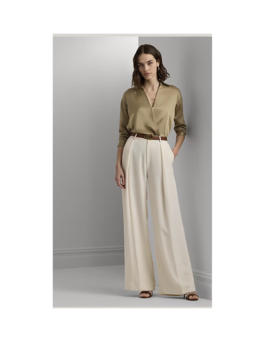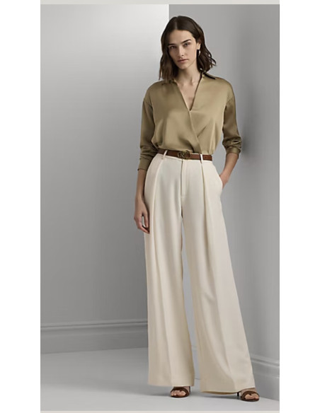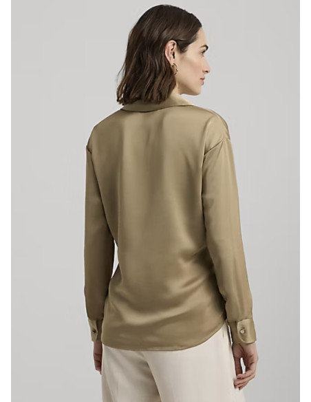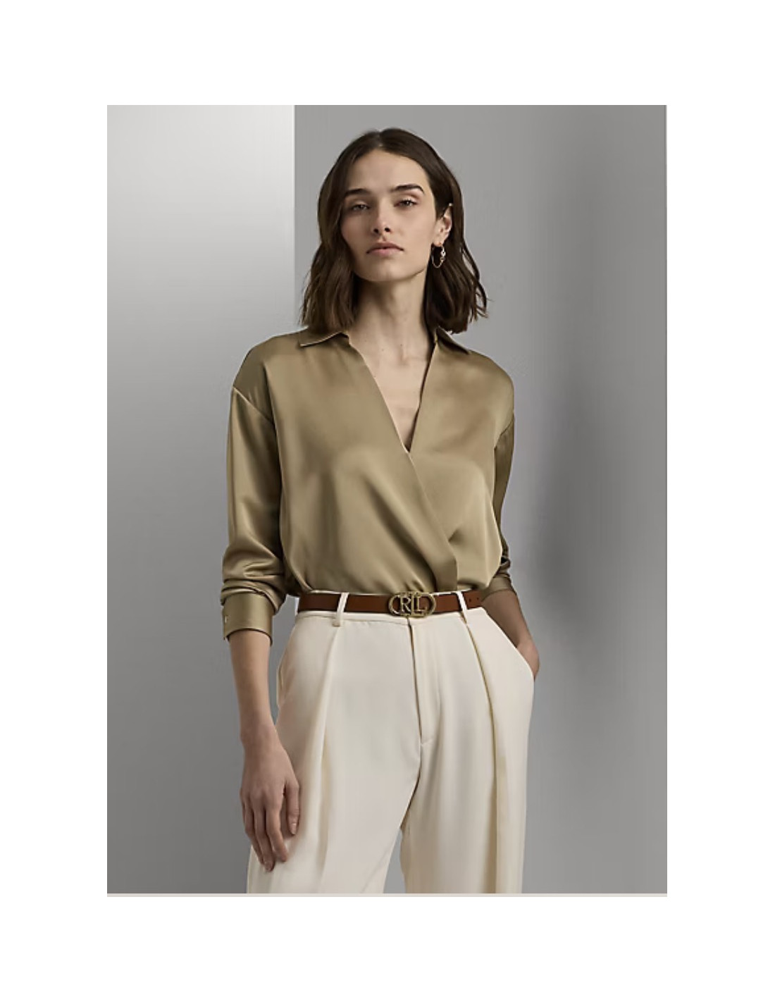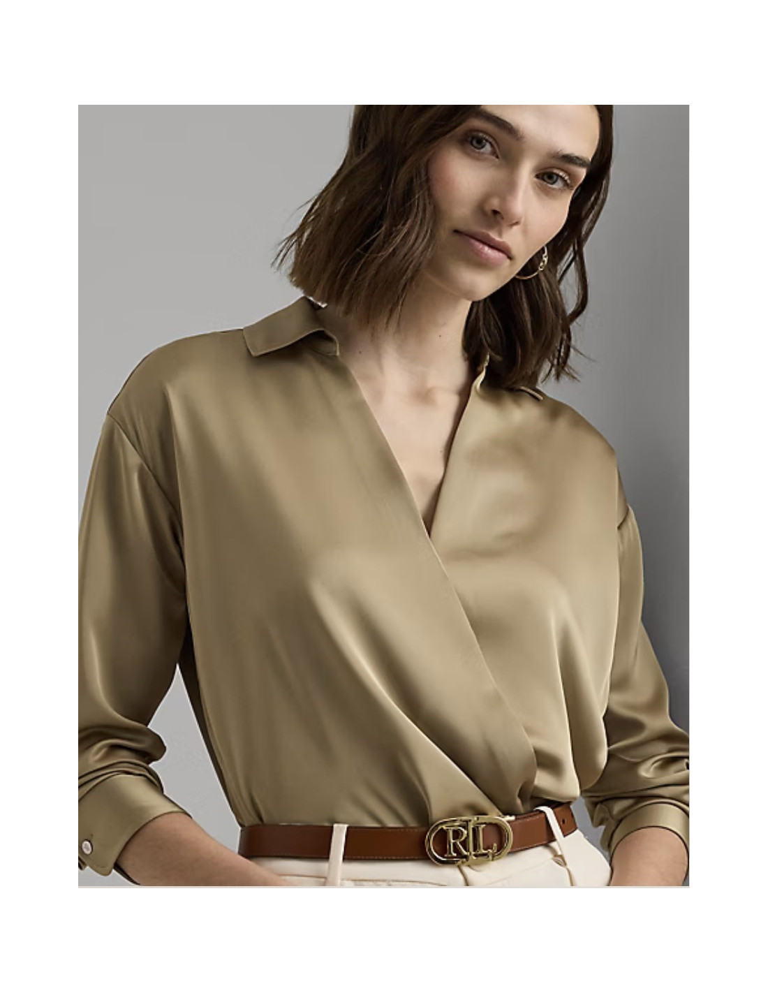 Doté d'un col à pointes en V croisé plongeant, cet élégant chemisier est confectionné en charmeuse de satin, réputé pour son toucher incroyablement doux et sa finition brillante.
