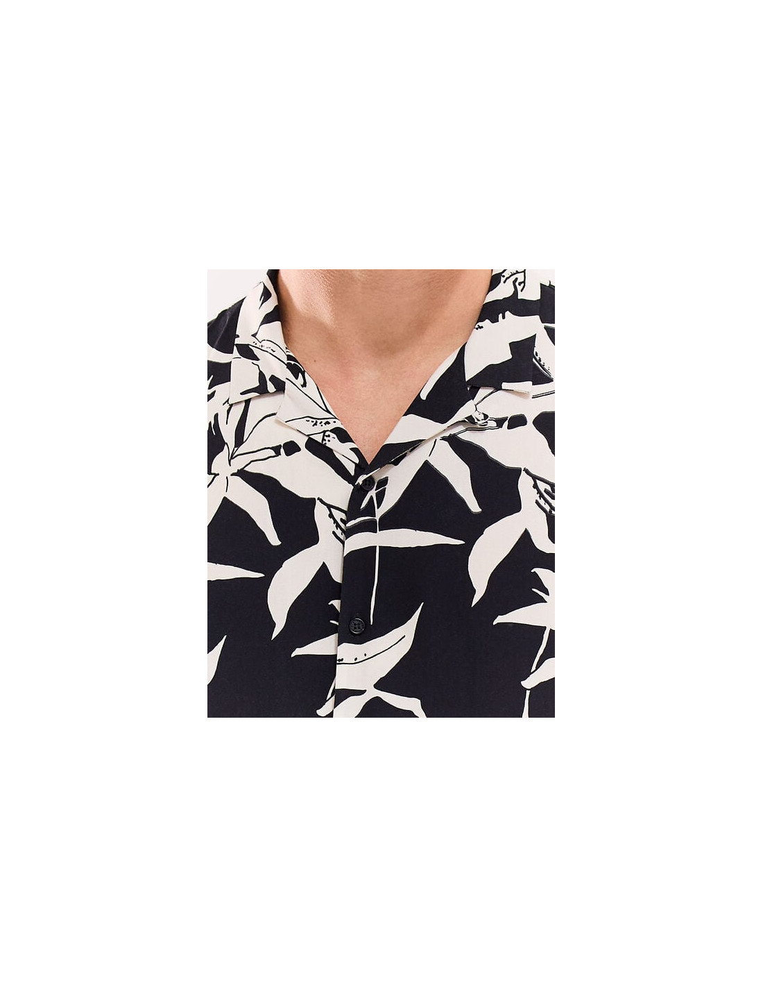 Chemise REGULAR noire Ecovero® fleurs blanches