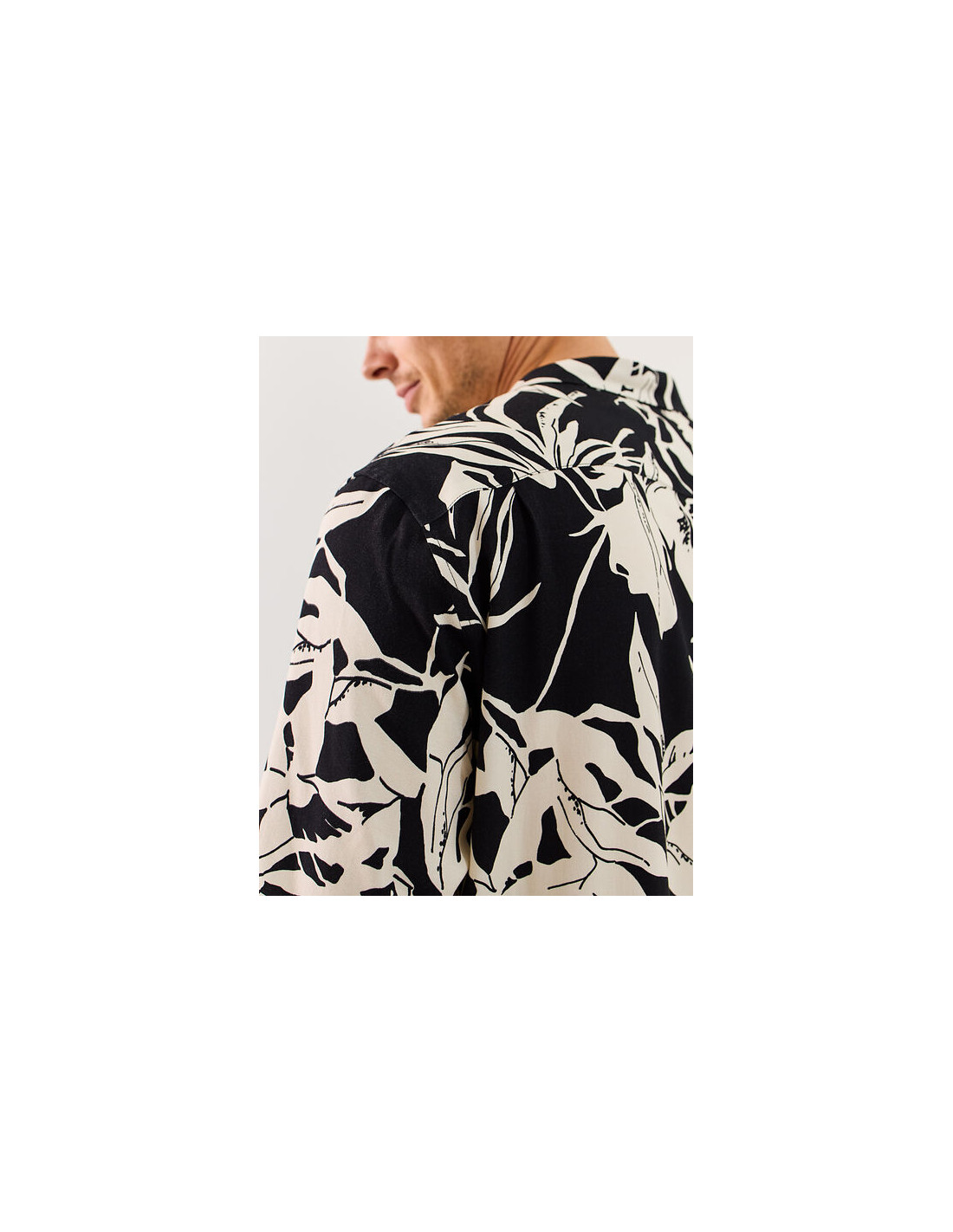 Flower power rock. La chemisette fait un retour remarqué, version maxi fleurs noires et blanches sur viscose Ecovero®. Succombez à sa fluidité.