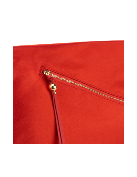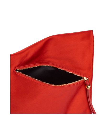 Pochette à rabat en satin asymétrique pour femme signée Diane von Furstenberg. Confectionnée en soie mélangée avec une finition satinée élégante, elle se replie sur elle-même. Elle est dotée d'une fermeture zippée asymétrique sur le devant avec tirette en cuir et s'ouvre sur un intérieur contrasté. Finitions dorées.