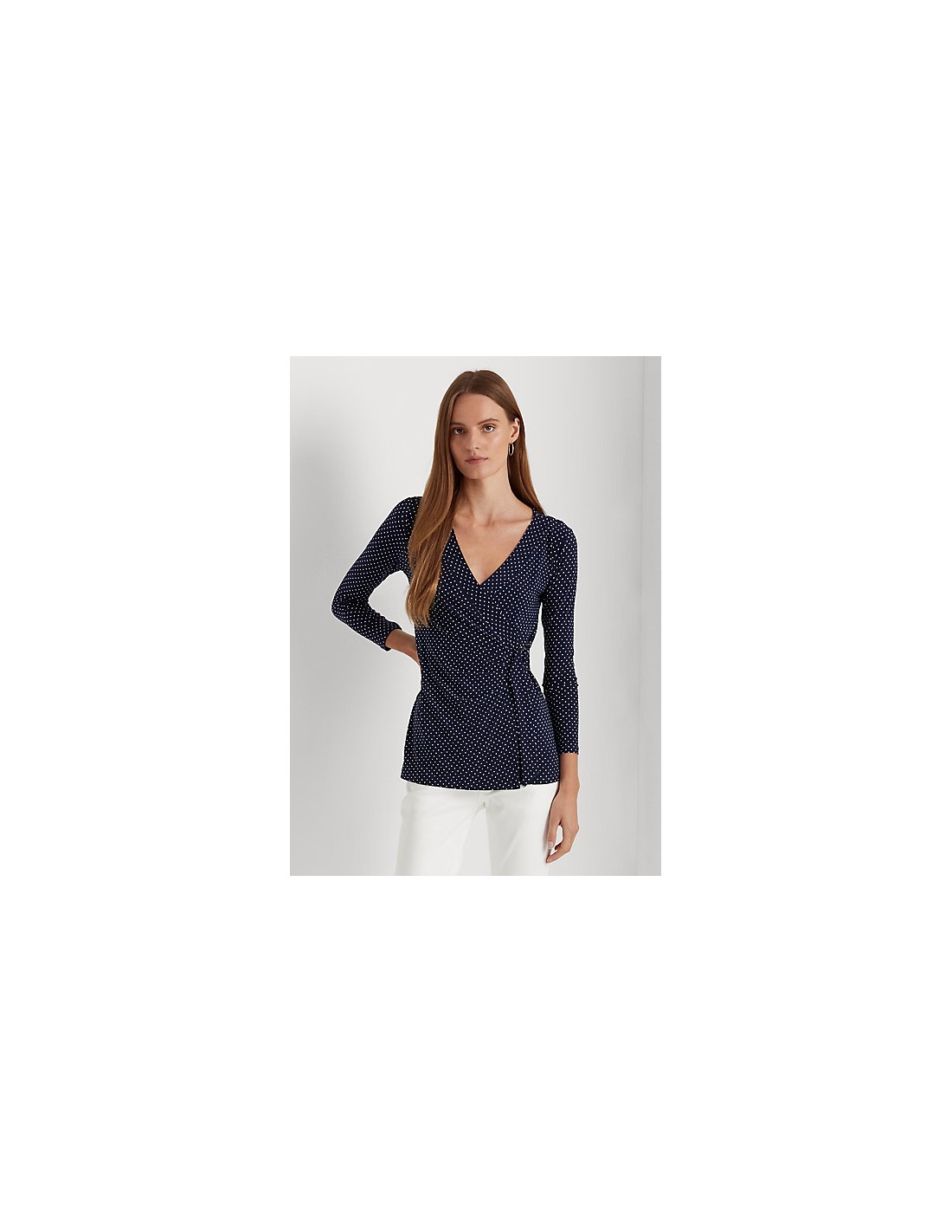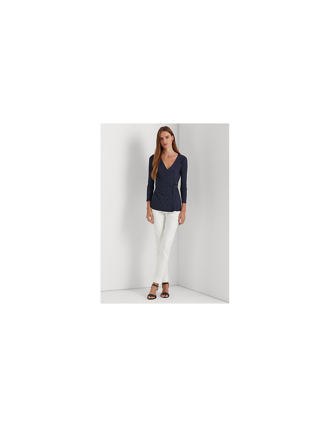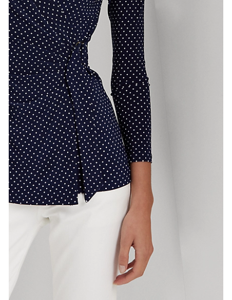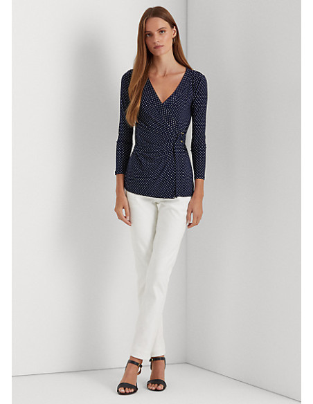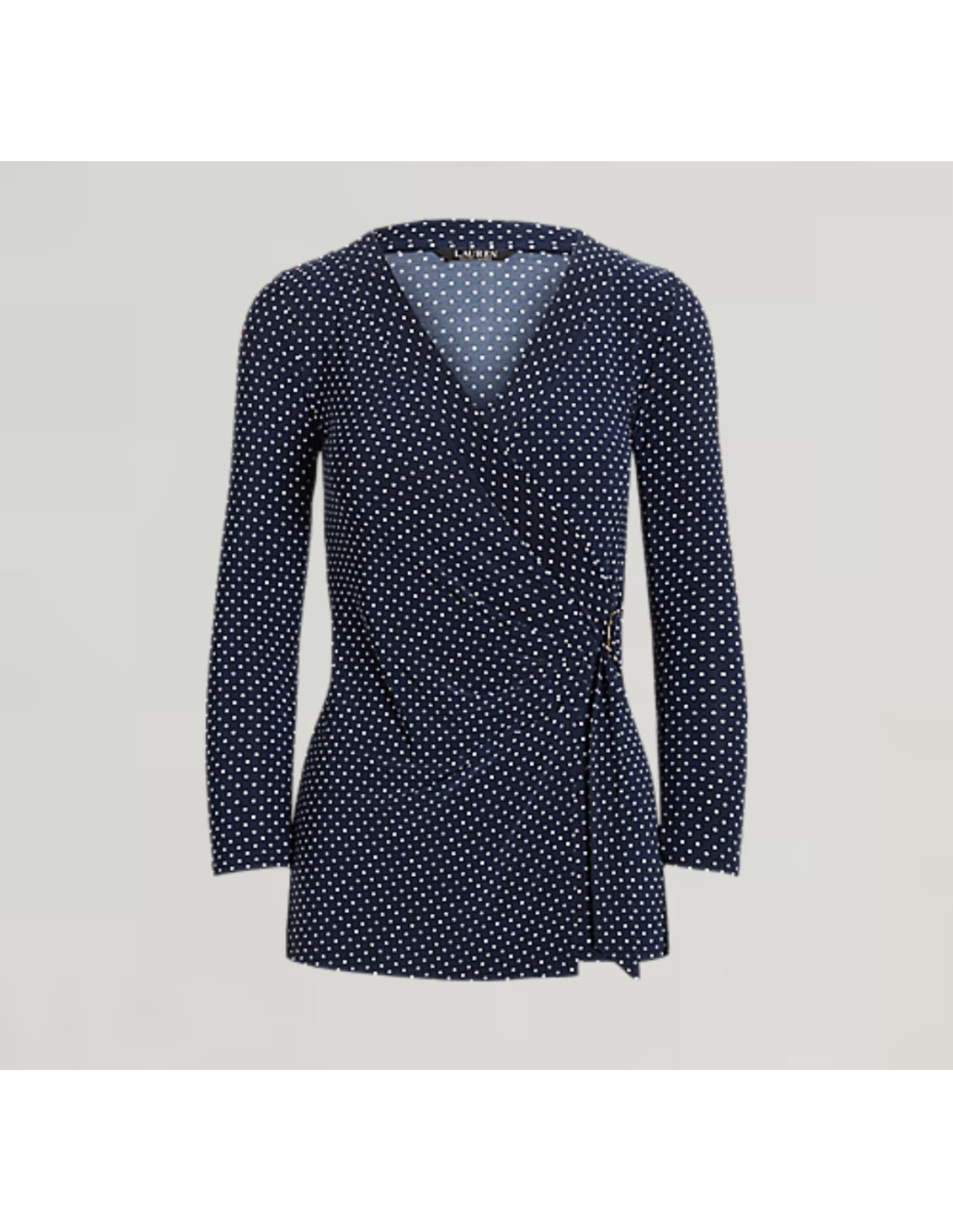 Orné d'un anneau en D gravé du monogramme « LRL » sur la taille, ce haut à col en V croisé à pois est confectionné en jersey stretch pour un confort optimal.