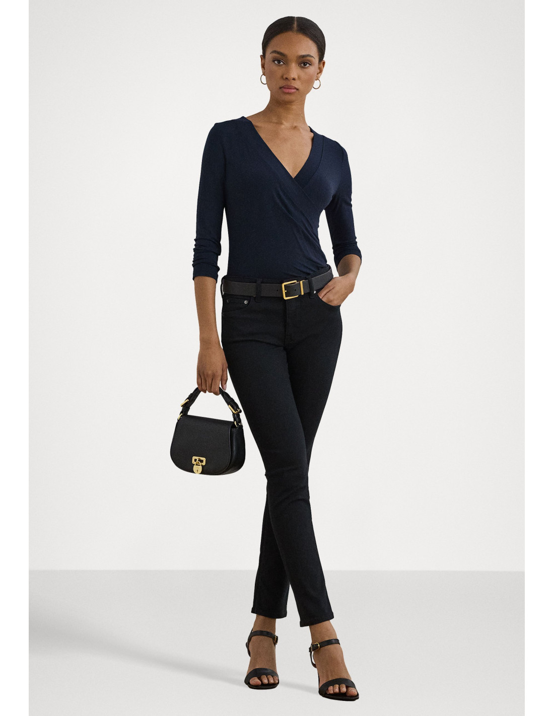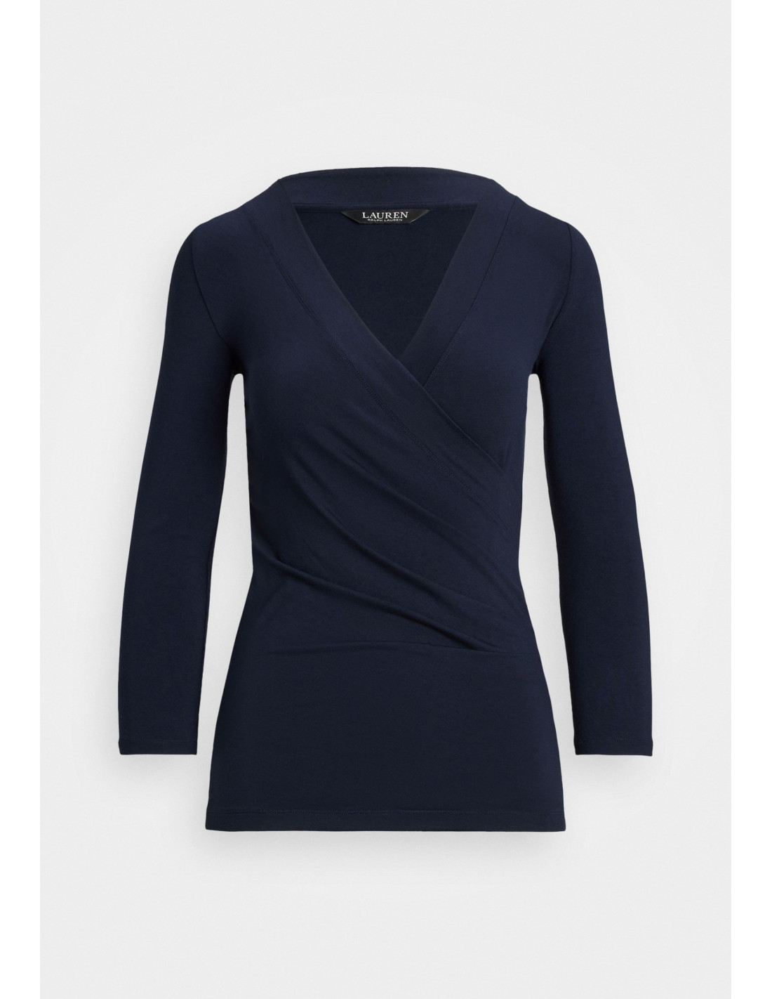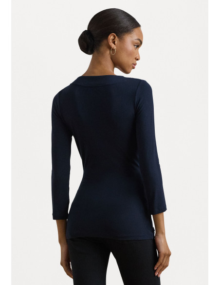 Des ruches flatteuses rehaussent l'allure romantique de ce haut en jersey à col en V croisé, brodé du monogramme Lauren pour une finition distinctive.