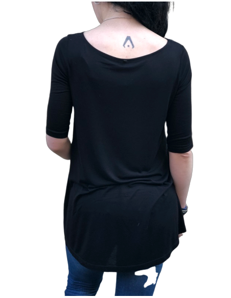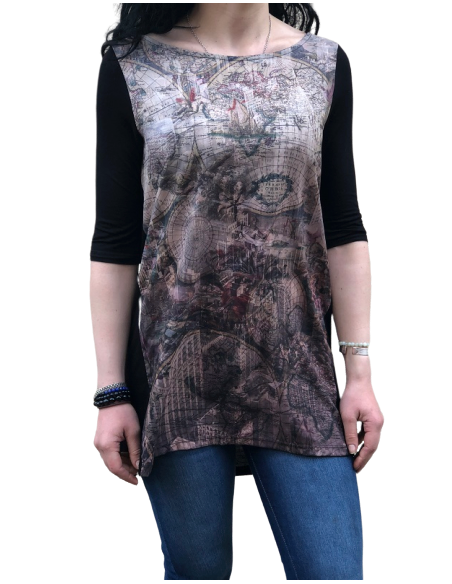 Blouse imprimée très soyeuse. Tissu devant 100%polyester, dos 100% viscose Matière souple et très résistante. entretien facile, Tissu fin, doux, Coupe ample, Coutures ton sur ton, Imprimé ludique