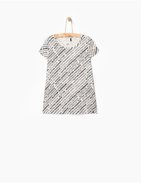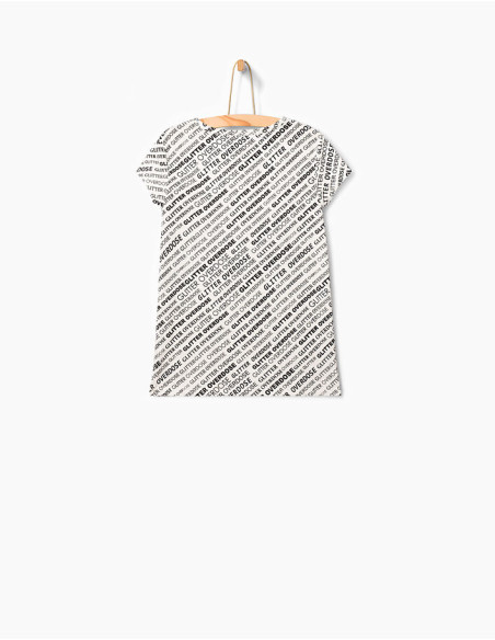 T-shirt blanc à print noir fille