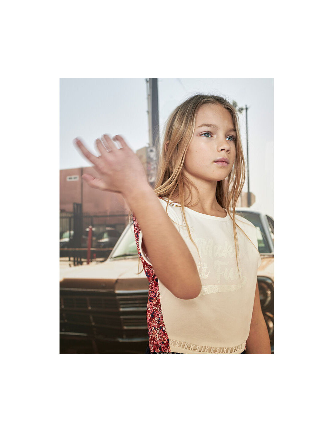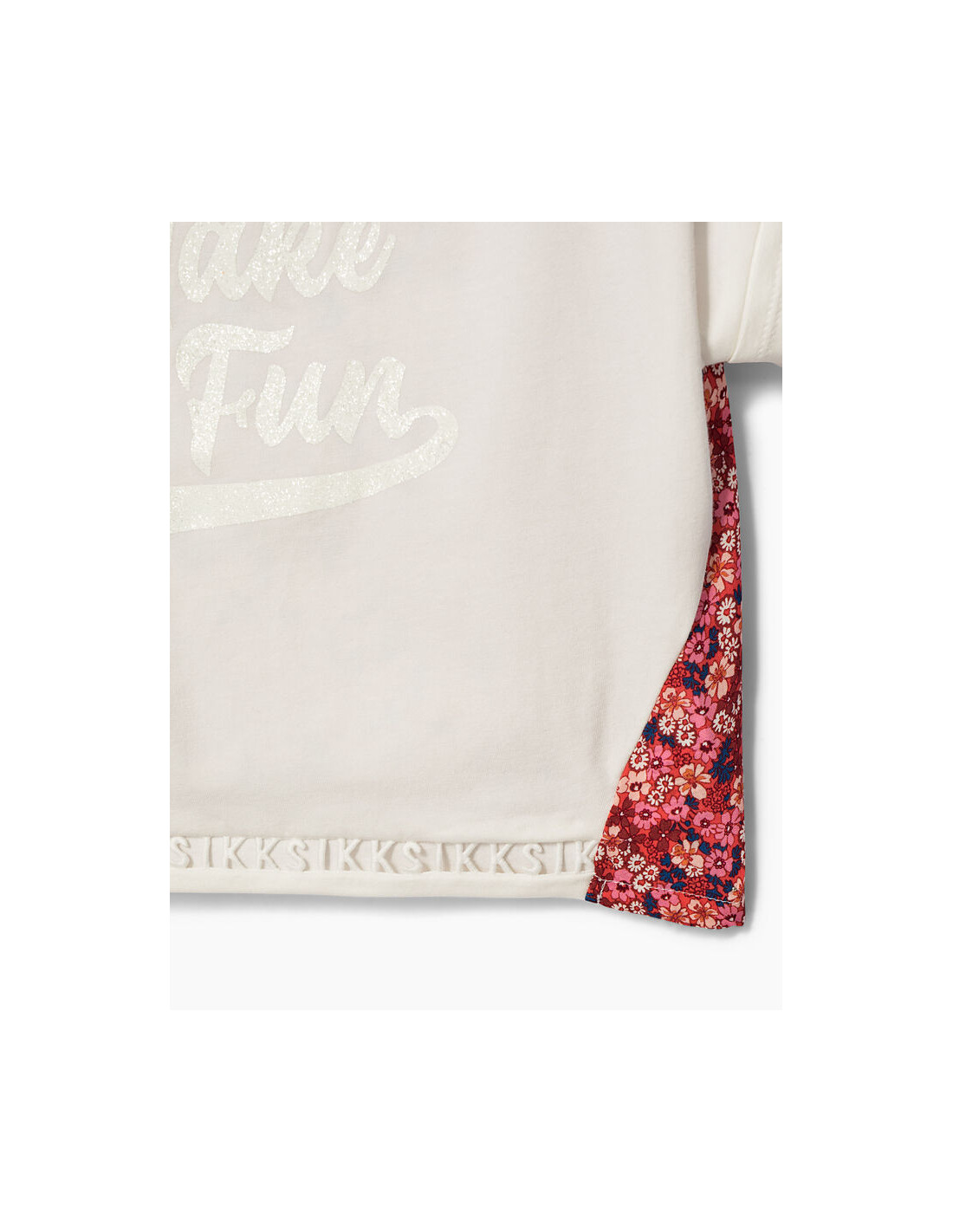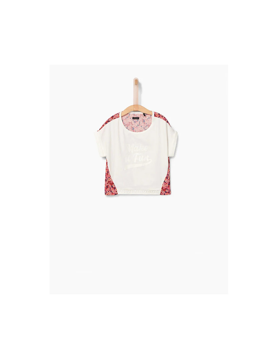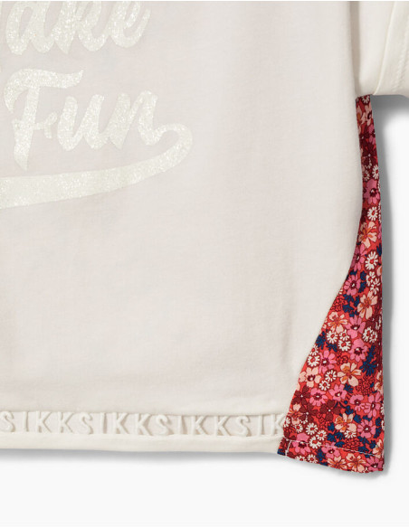 T-shirt cropped blanc cassé et fleuri fille