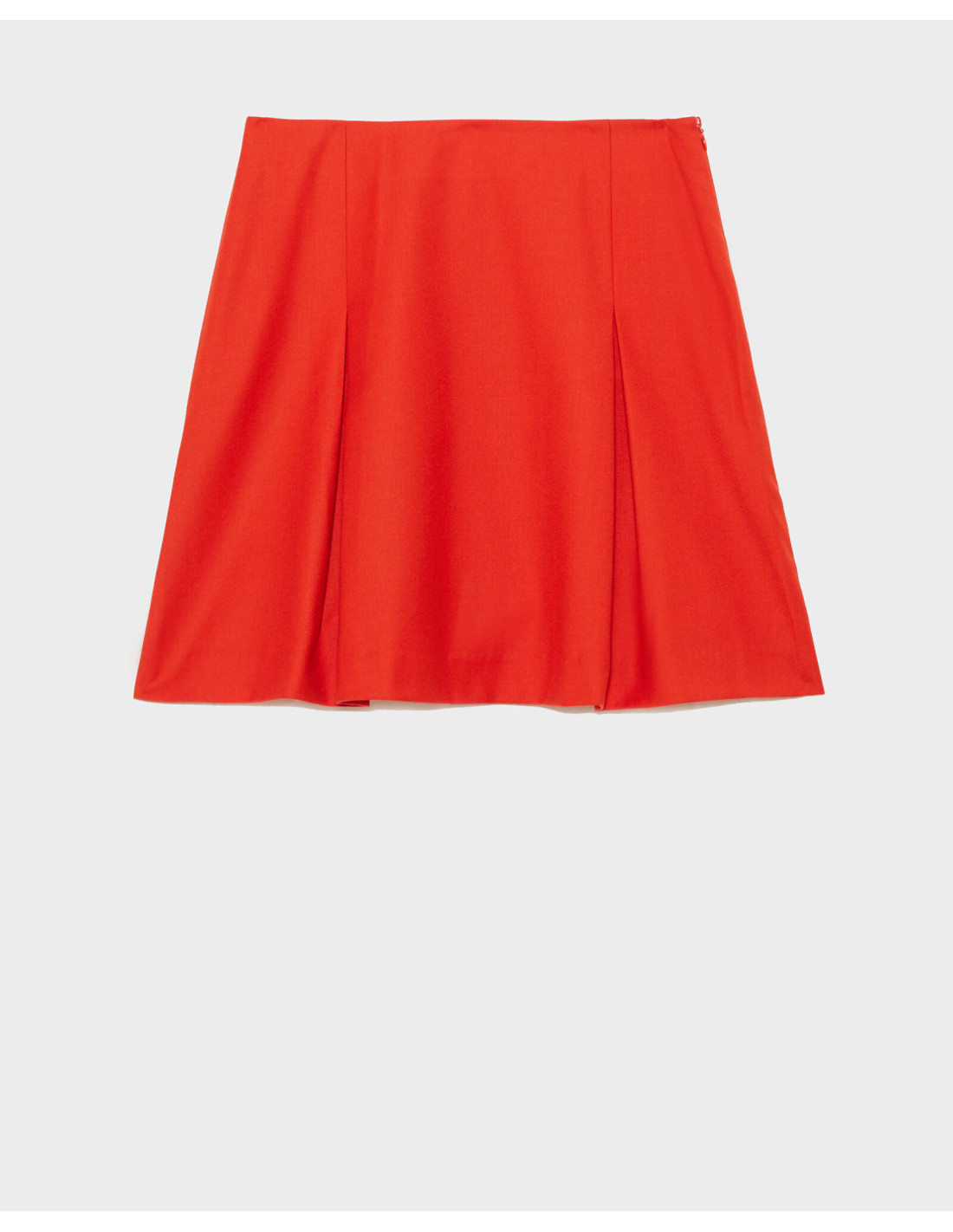 Jupe courte à plis creux inspirée des uniformes d’écolière.