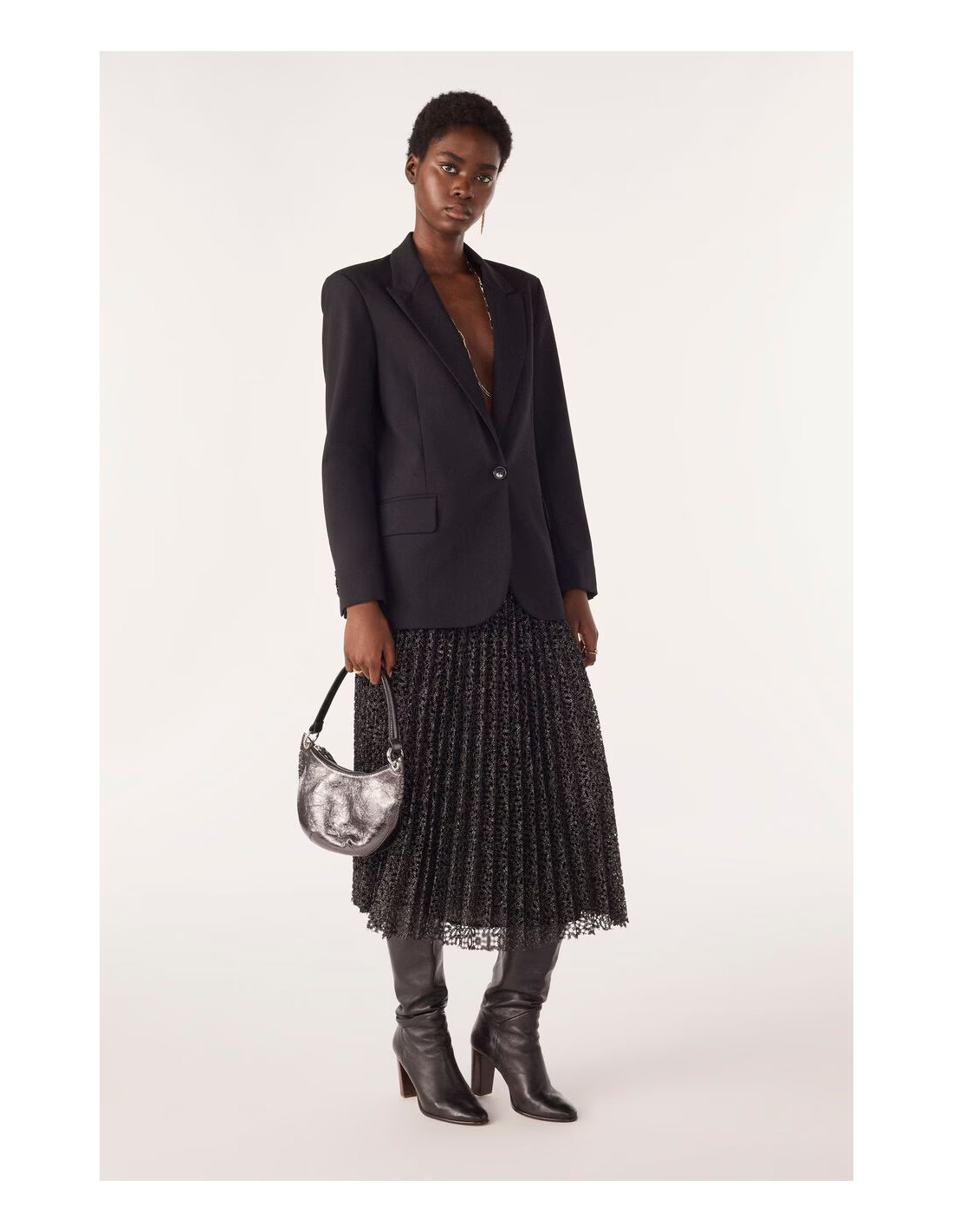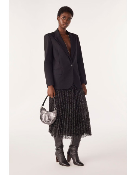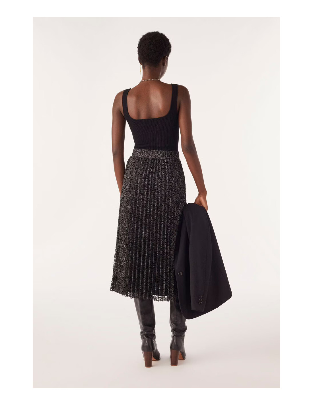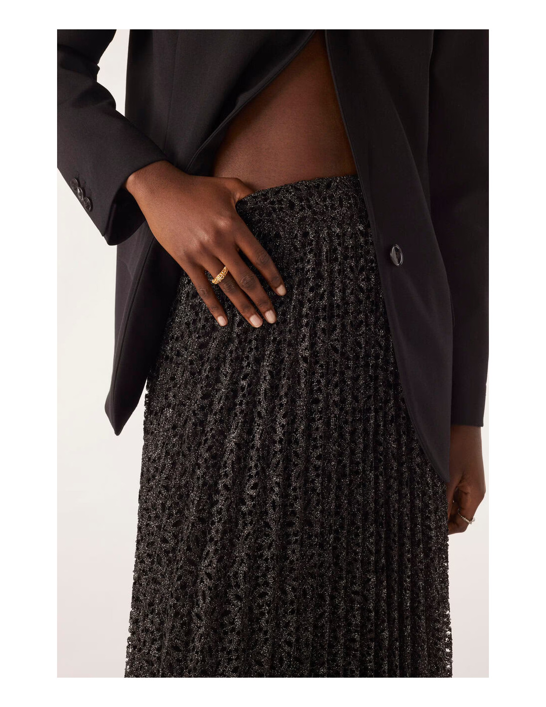 Irrésistible avec son tombé fluide qui sublime notre silhouette, la jupe CAMILLE séduit par ses nombreux atouts. On adore ce modèle plissé qui se distingue par une maille fantaisie ajourée qui vient surmonter une doublure ton sur ton. Les fils métalliques inclus dans sa composition apportent un côté glamour et contemporain pour illuminer notre look ! Une jupe à porter avec des bottes à talon pour affirmer sa féminité ou avec des sneakers pour un style décalé.