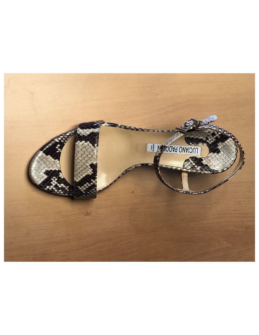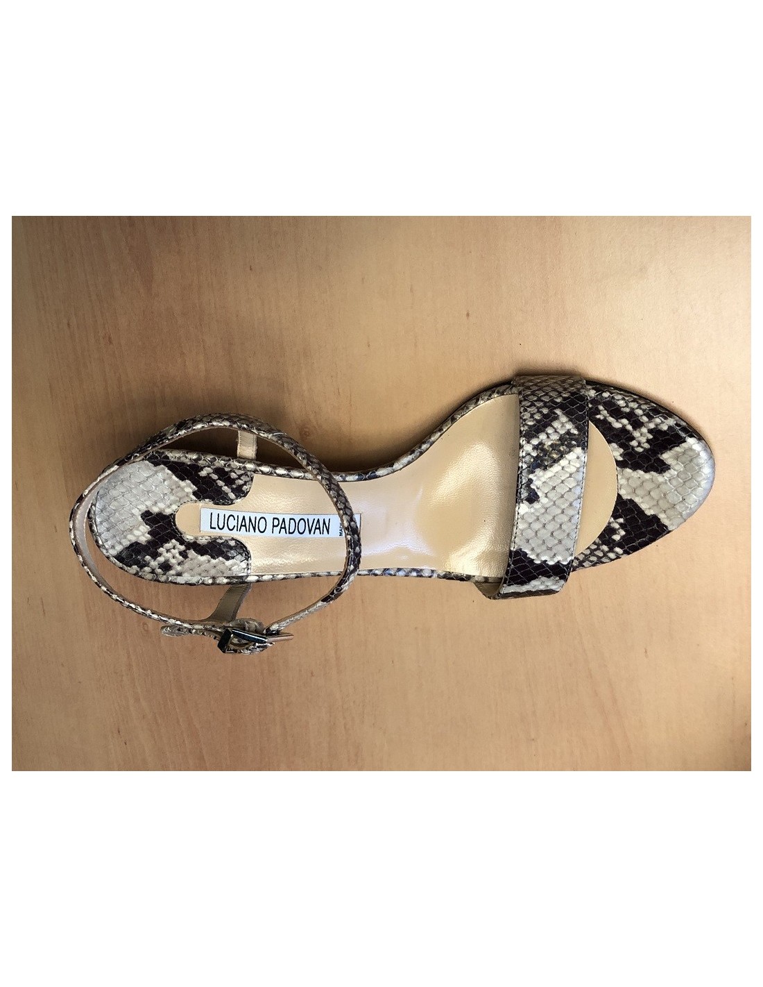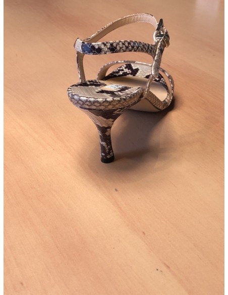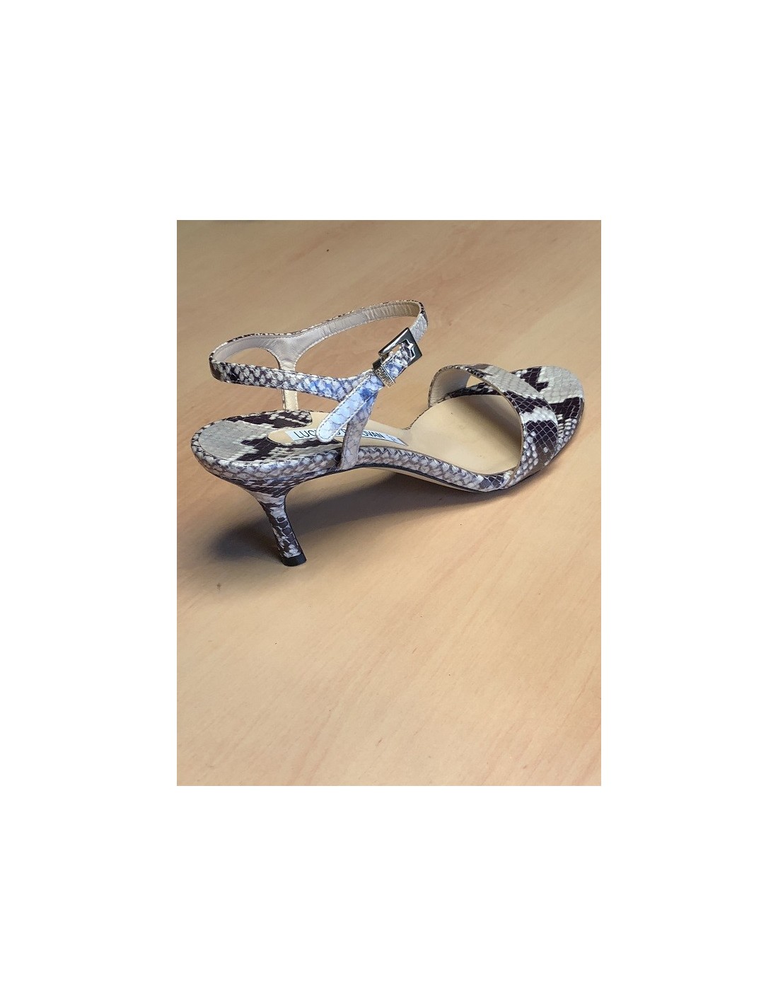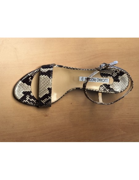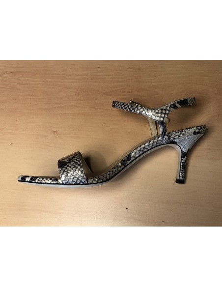 Sandales imprimé serpent, boucle gravé du logo de la marque. Pointe arrondie, talon mi-long recouvert doublure en cuir