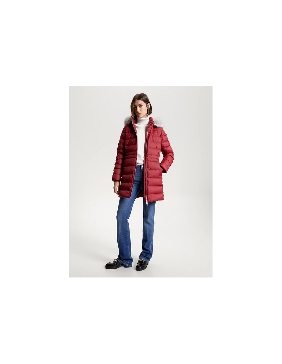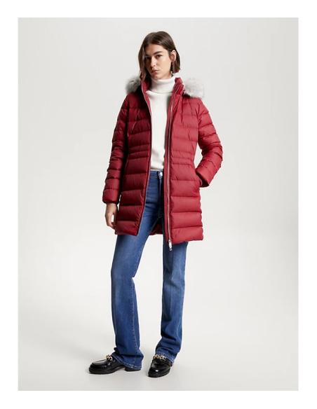 Affrontez les journées venteuses avec style grâce à ce manteau en duvet rembourré pour femme Rouge Tyra avec veste en fourrure Tommy Hilfiger WW0WW39747-XJS, doté d'une capuche bordée de fausse fourrure et de poignets coupe-vent en tricot côtelé pour une protection supplémentaire.
