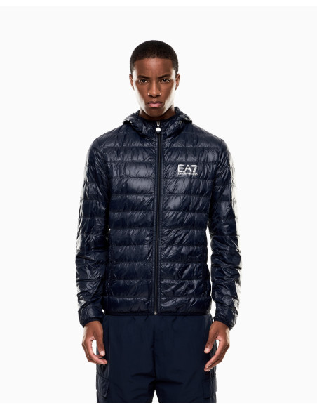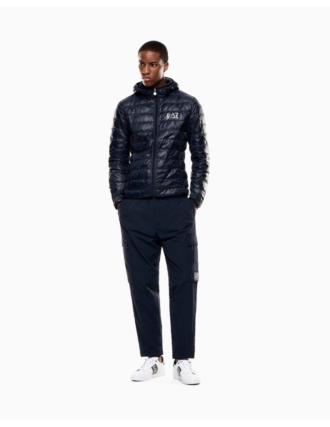 Cette doudoune associe un rembourrage en duvet d’oie avec un tissu technique pour offrir un vêtement chaud et polyvalent adapté au sport et aux loisirs. Le modèle présente une fermeture zippée sur le devant, une capuche fixe, deux poches latérales très pratiques et le logo EA7 contrasté sur la poitrine. Fermeture zippée sur le devant. Deux poches zippées sur les côtés Logo EA7 contrasté sur la poitrine