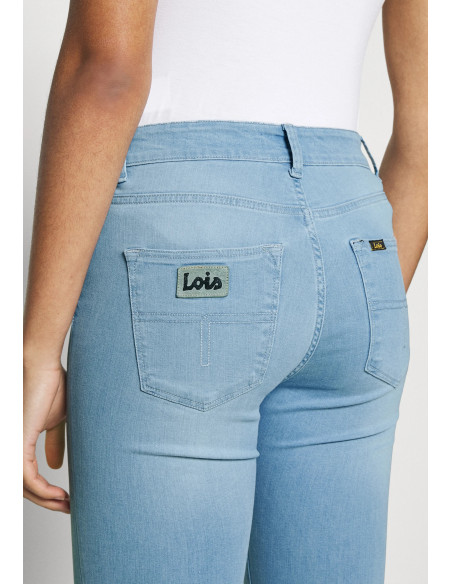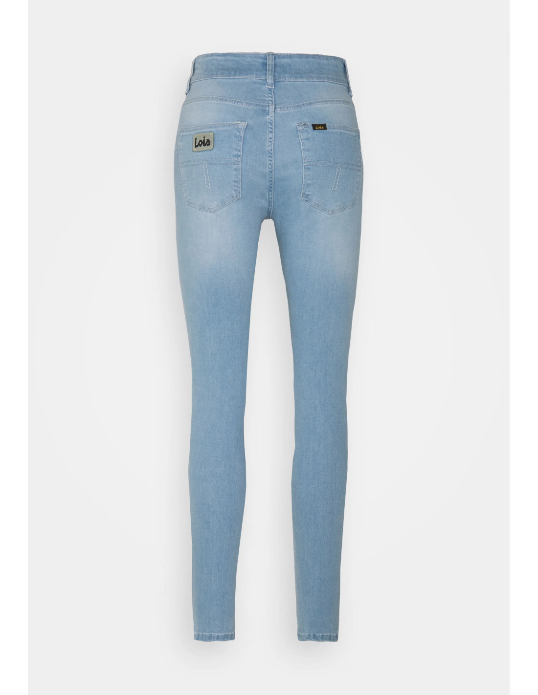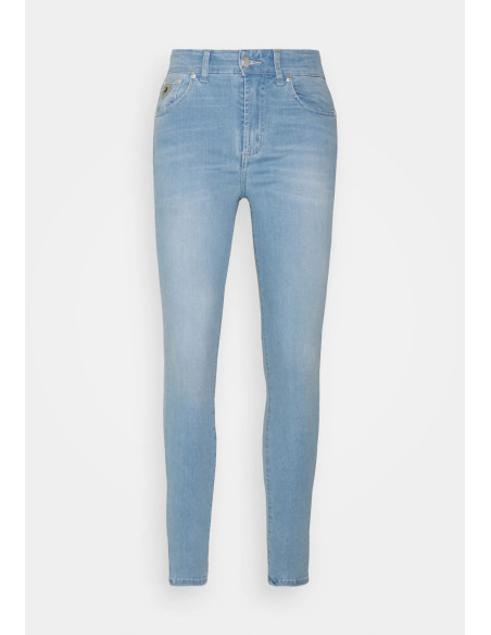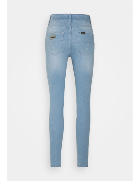 Jean coupe skinny taille haute, braguette avec fermeture éclaire, poches arrières, poches latérales.