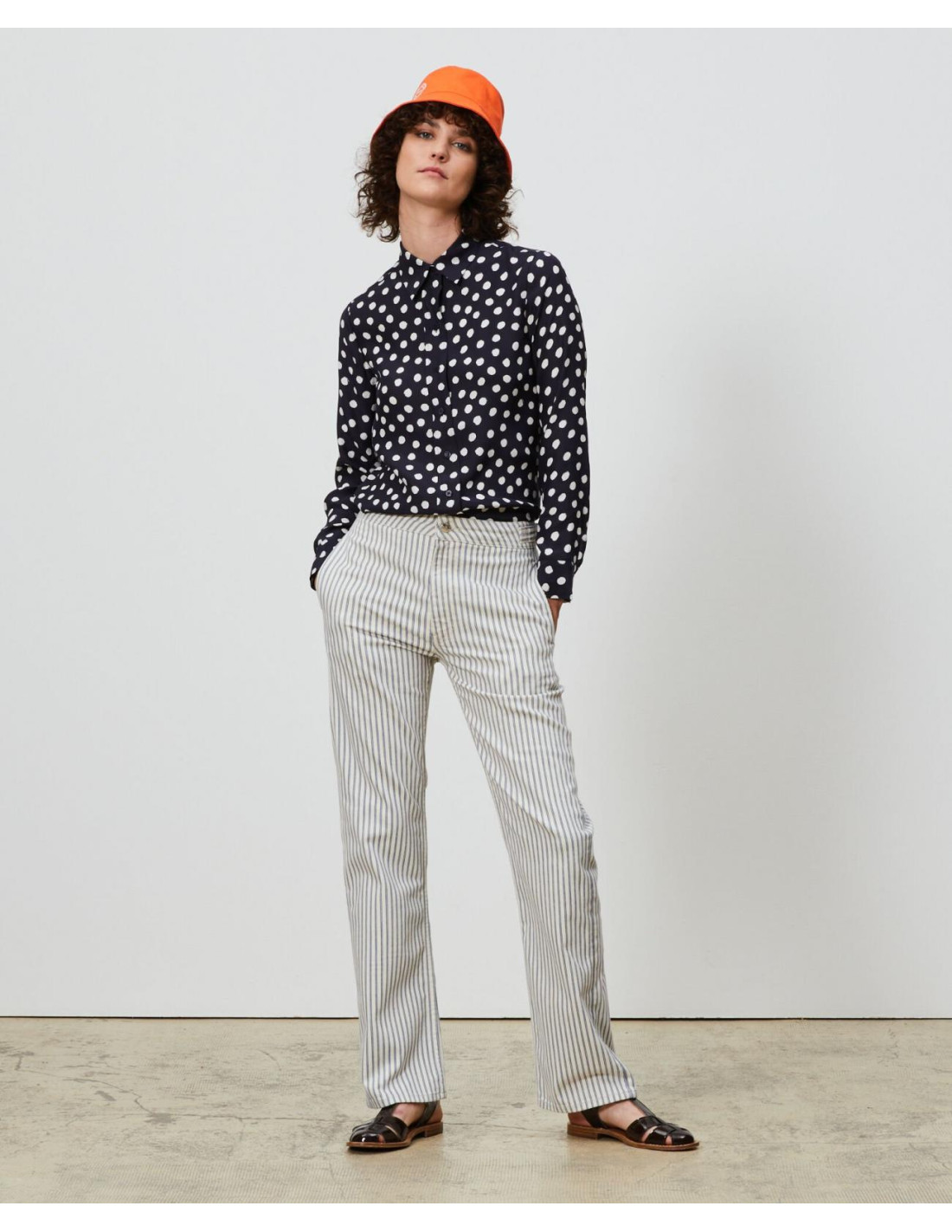 Taille haute et jambe ample et droite qui allongent la silhouette.