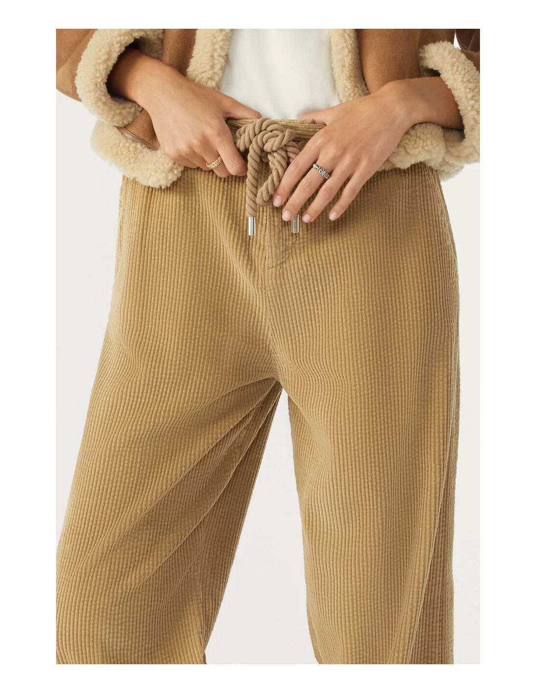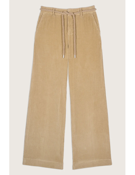 Le pantalon BALI en velours beige est un modèle fluide et incroyablement confortable qui offre une grande liberté de mouvement tout en apportant une touche d'élégance décontractée. Doté d'une taille moyenne, il se ferme à l'avant avec un bouton et une fermeture éclair discrète. Sa ceinture en corde de coton permet de régler le pantalon à votre convenance tout en ajoutant une touche maritime que nous affectionnons particulièrement. Un détail qui fait toute la différence ? Les poches latérales pratiques pour y glisser vos petits essentiels. Associez-le à un t-shirt et des baskets pour un look décontracté et féminin. De plus, les fibres de coton de ce modèle sont issues de l'agriculture biologique, ce qui le rend d'autant plus attrayant sur le plan éthique.