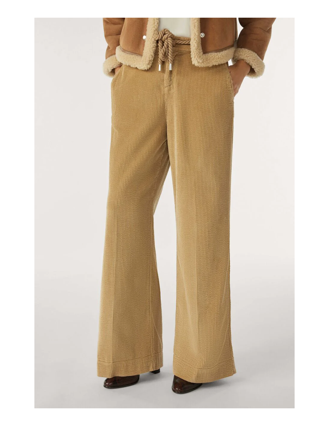 Pantalon en velours beige grosse côte