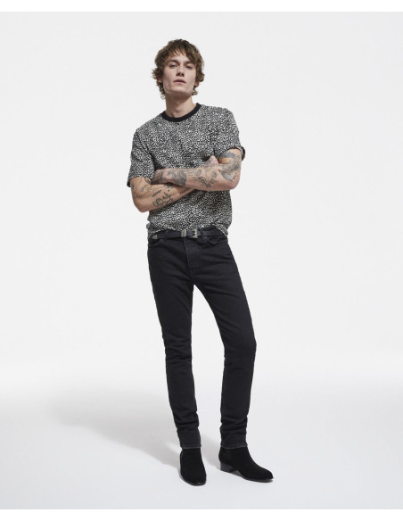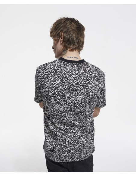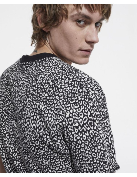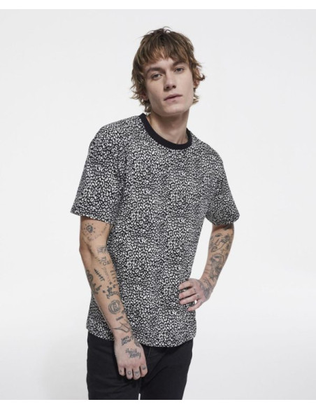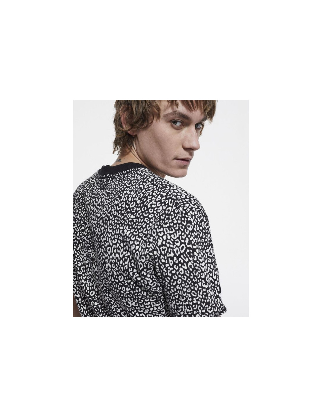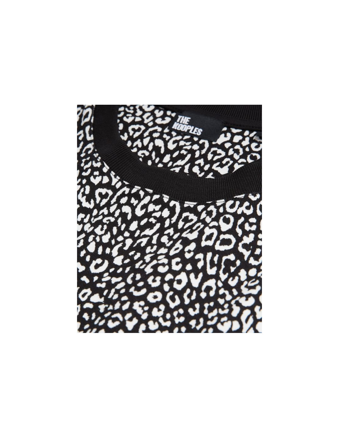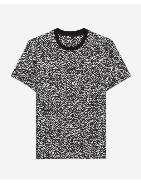 T-shirt imprimé coton T-shirt léopard noir 100 % jersey de coton Noir, marron et beige Coupe décontractée Encolure arrondie noire Motif léopard