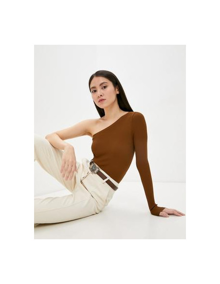 Pull avec une seule manche coupe ajustée marron.
