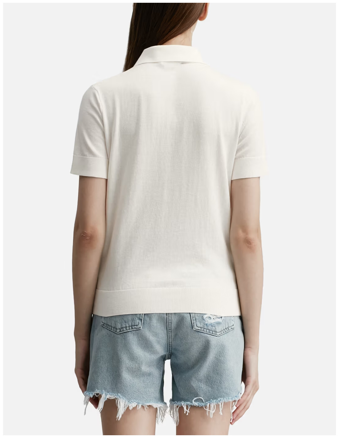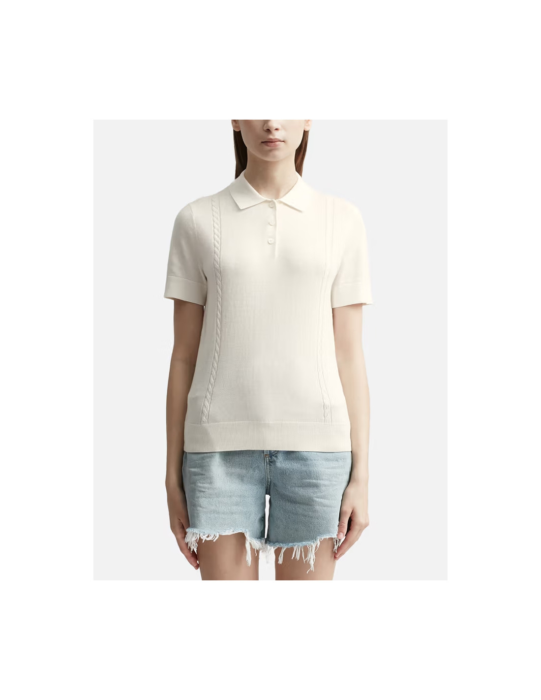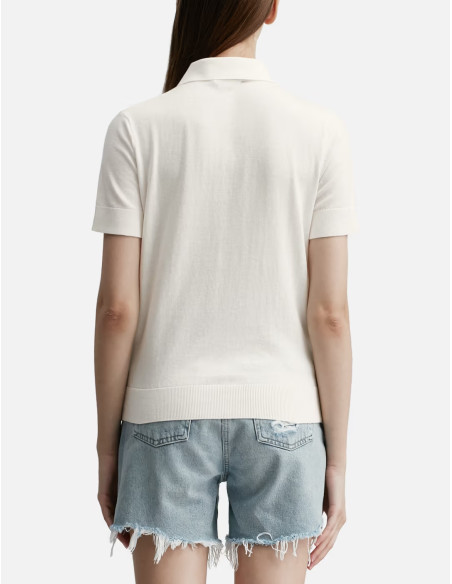 Polo shirt SYBILE en coton et cachemire, col polo, patte de boutonnage nacrée. Détail torsadé sur le devant. Ourlet côtelé