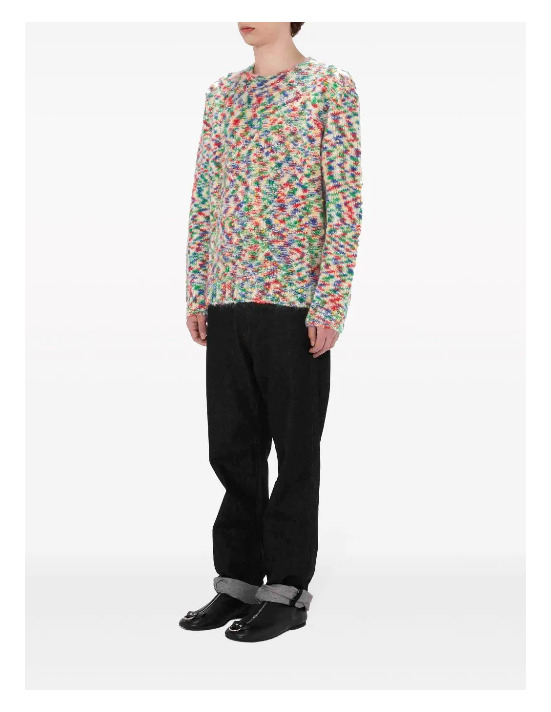 Pull Connor multicolore édition JW Anderson. Pull en tricot de laine et mohair. Col ras du cou, ourlet et poignets en tricot côtelé. Cet article a été conçu dans le cadre de la collaboration A.P.C. x JW Anderson.