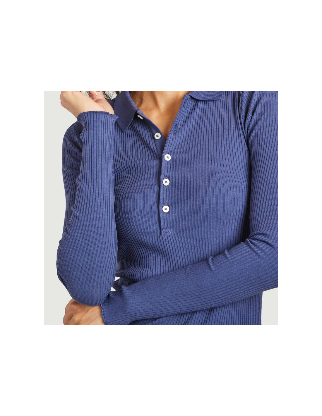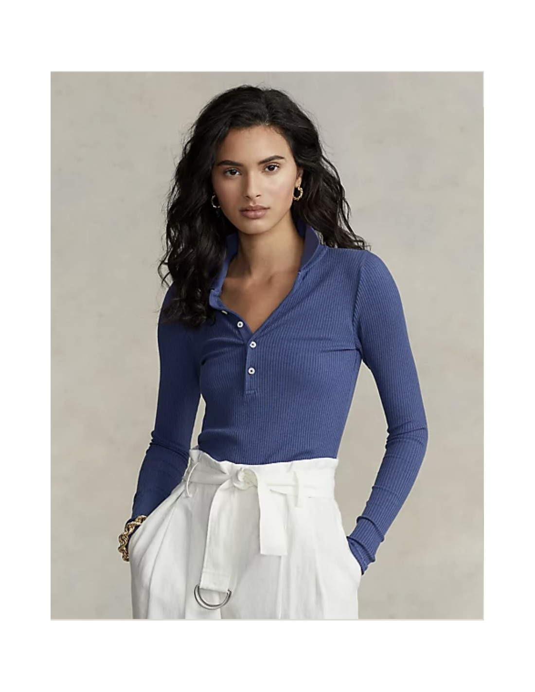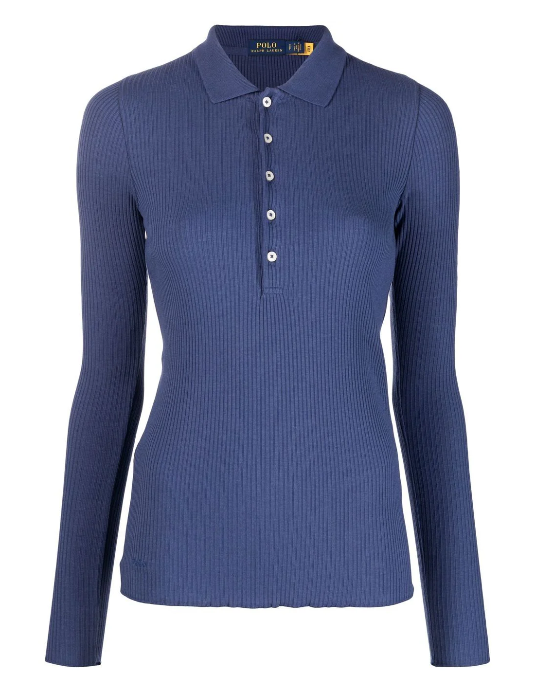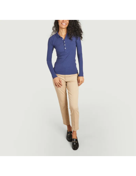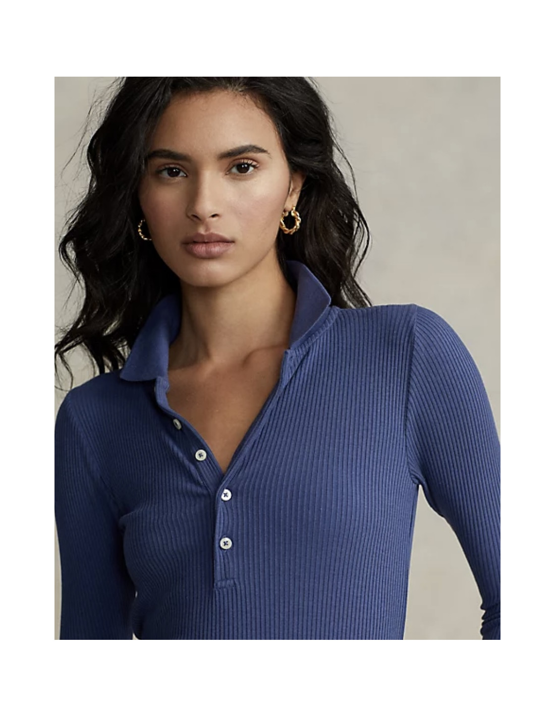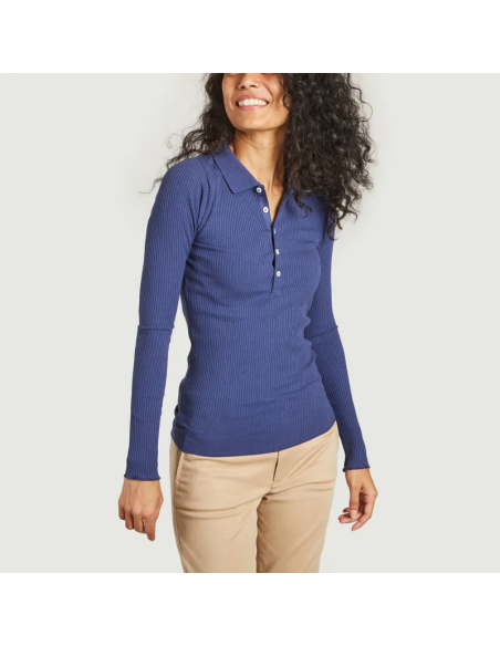 Pull polo coupe slim, col avec boutons, manches longues, texture côtelée, broderie logo
