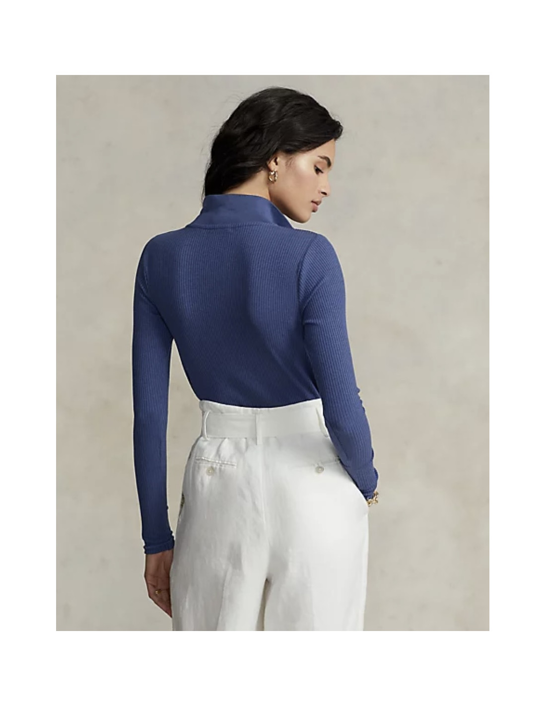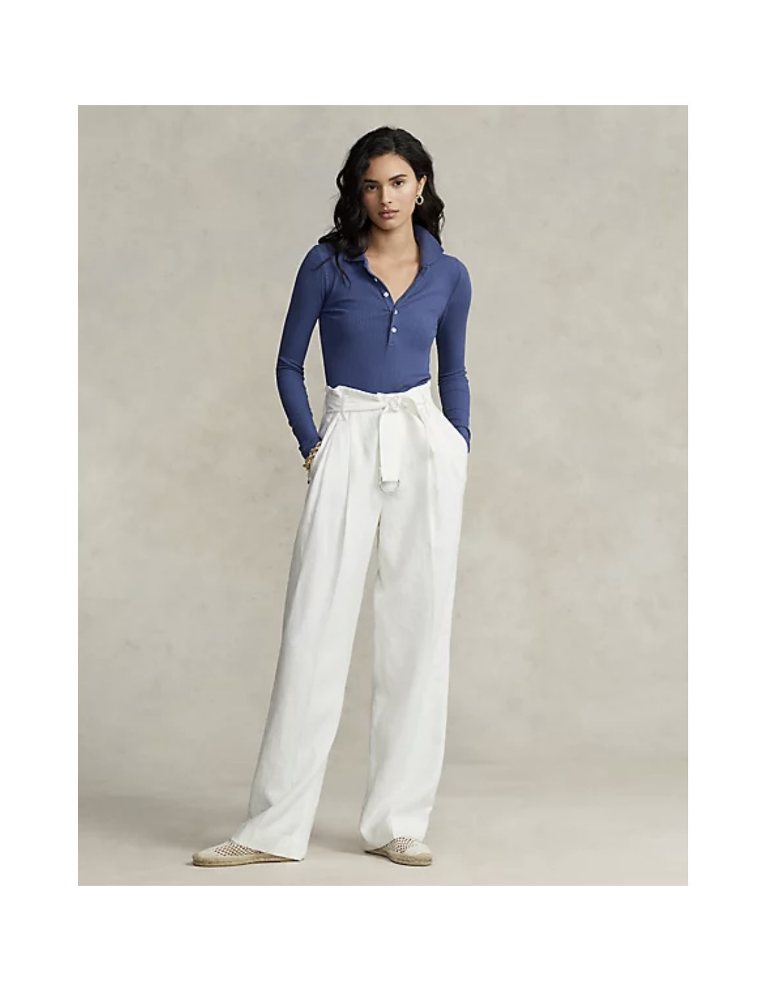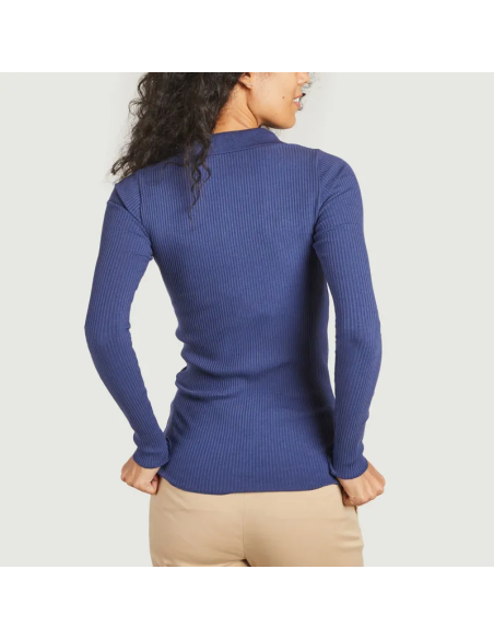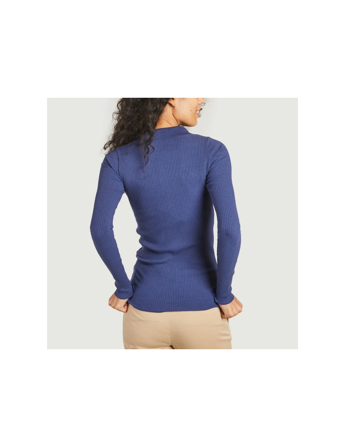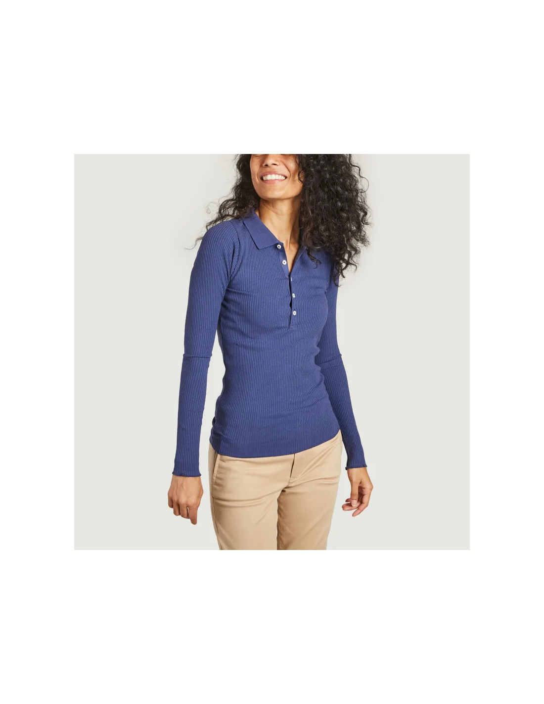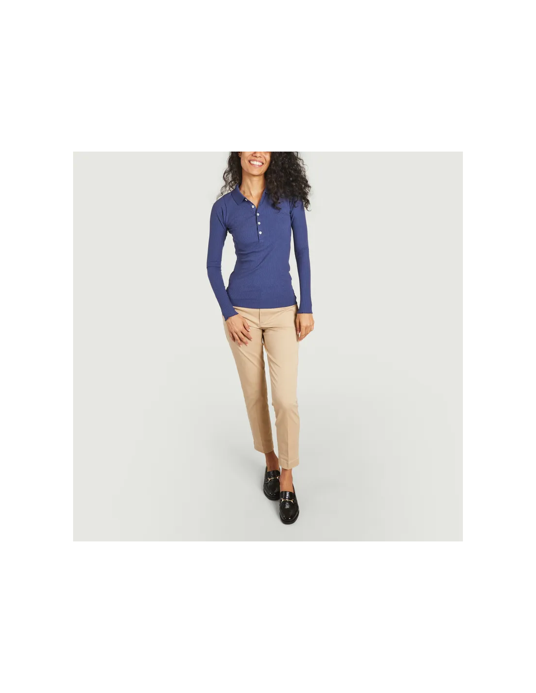 Pull polo coupe slim, col avec boutons, manches longues, texture côtelée, broderie logo
