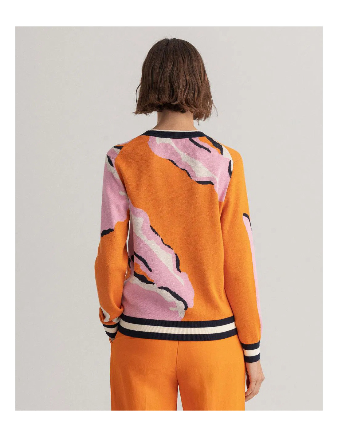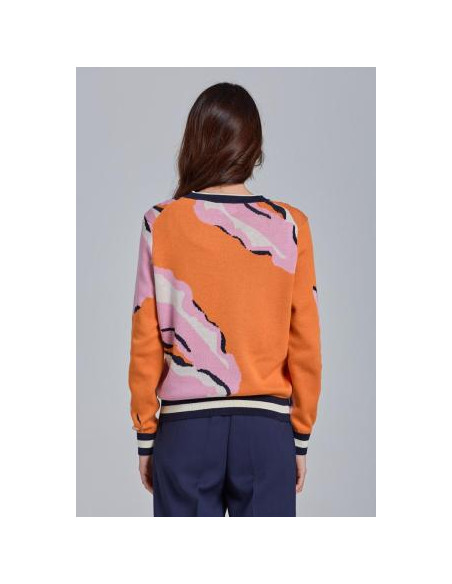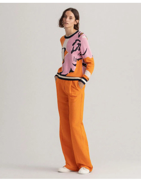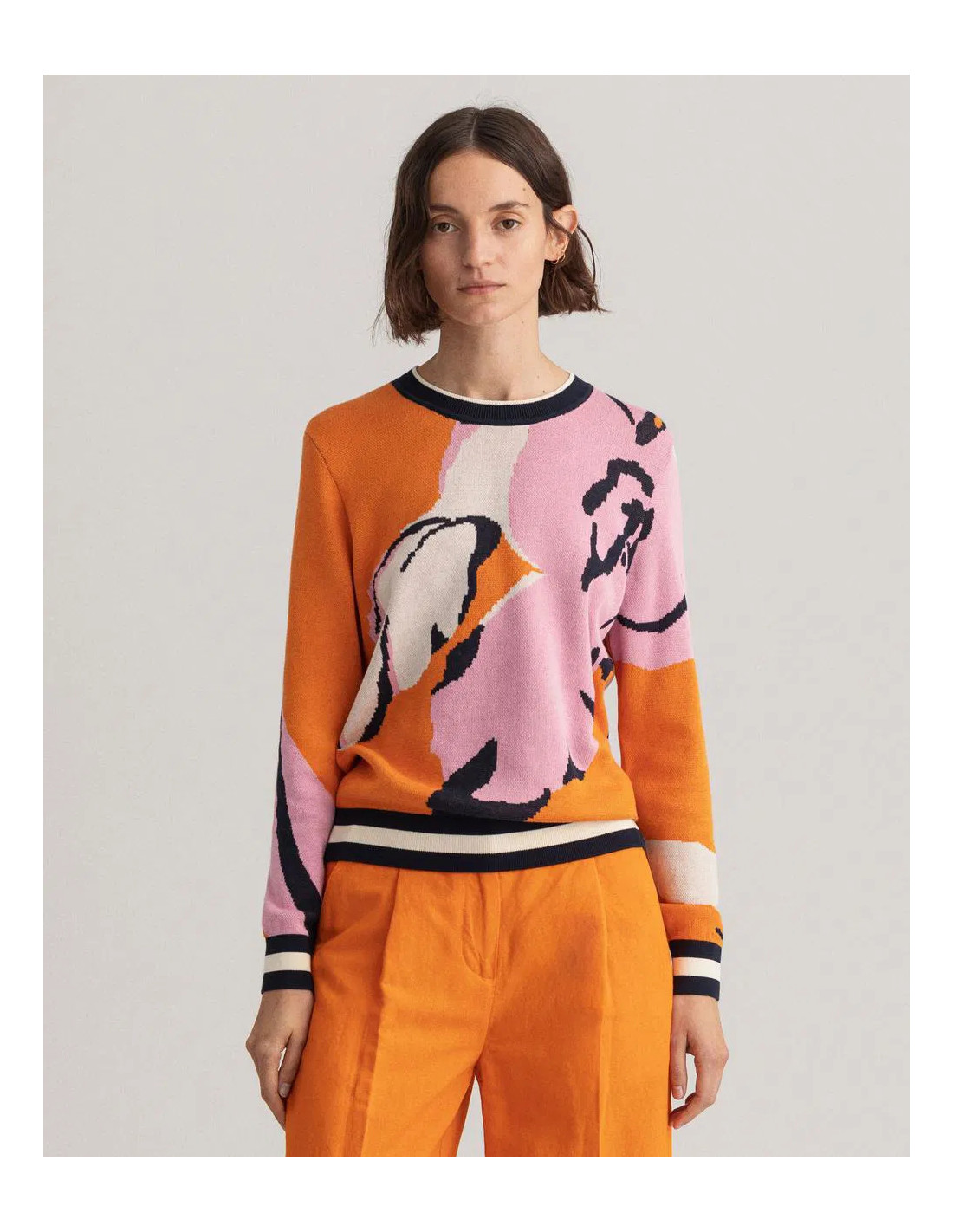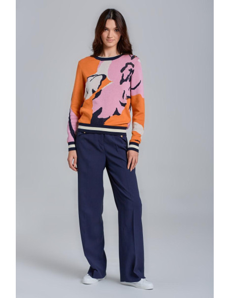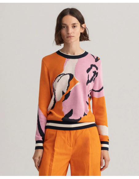 Ce pull arbore un style universitaire grâce à sa maille de coton douce et ses surpiqûres contrastantes aux manches. Sa coupe classique et son motif floral apportent une touche de couleur. Complétez votre look en l'associant à un jean ou une jupe.