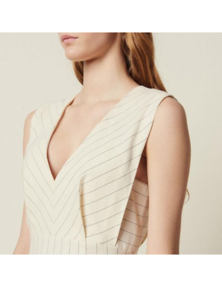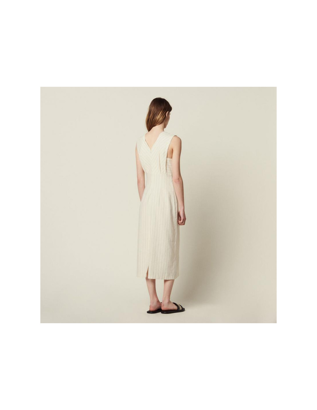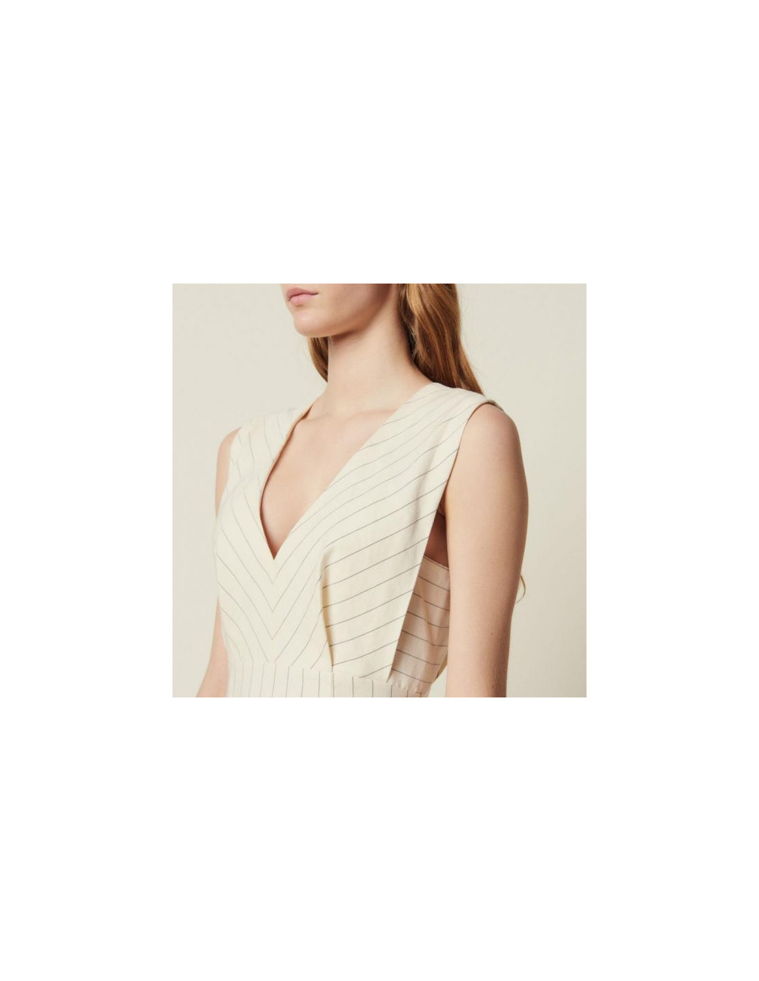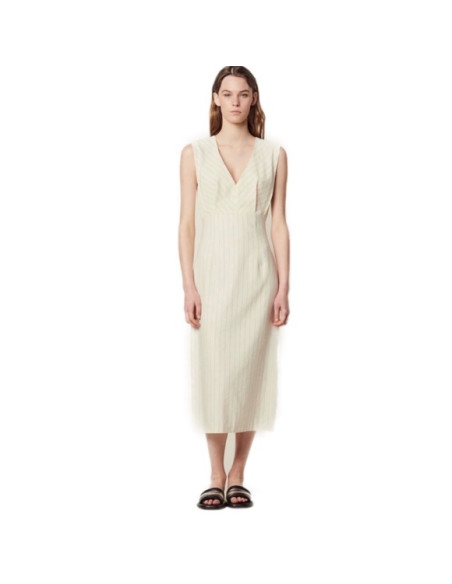Description produit Robe femme Sandro • Robe midi structurée • Décolleté V profond • Dos légèrement dégagé • Jeu de plis sur le devant • Fermeture par un zip invisible au dos. Description produit