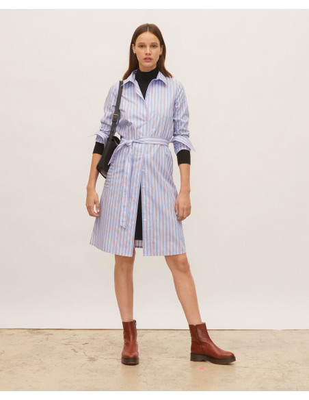 Robe-chemise ceinturée en coton