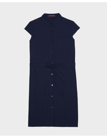Robe chemise ceinturée en popeline de coton Sumpima, à petits mancherons, inspirée d’Ava Gardner dans Mobambo, film culte des fifties.