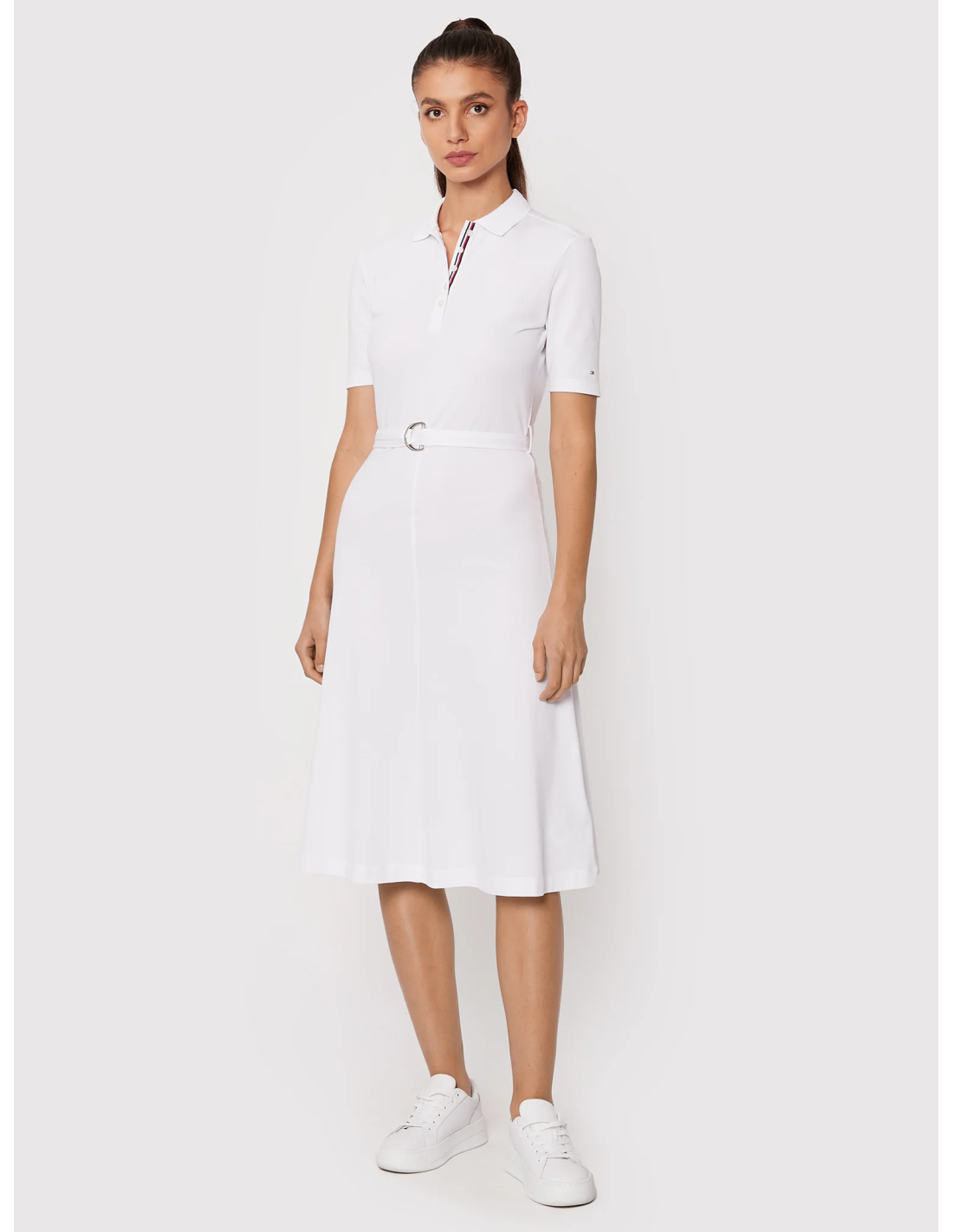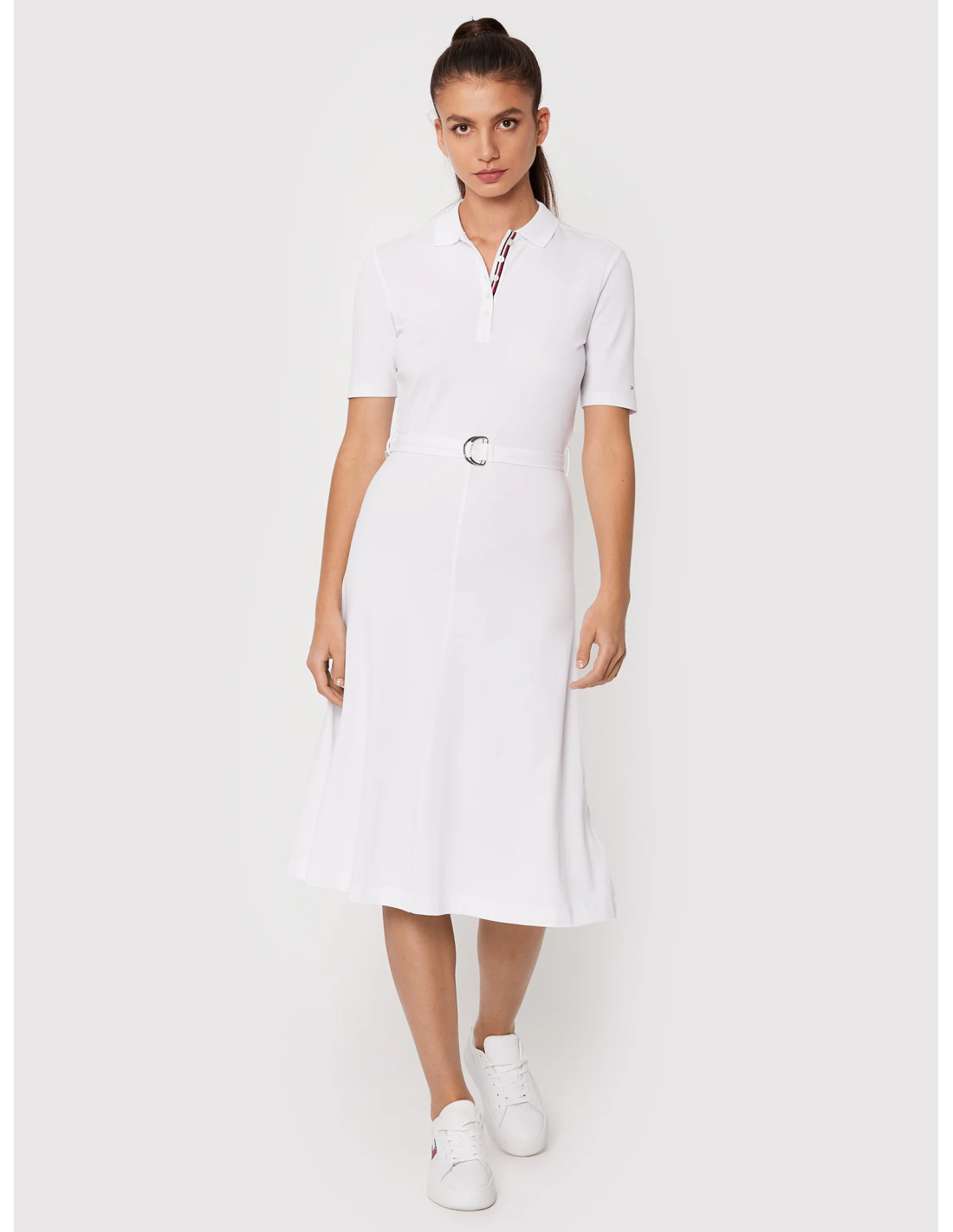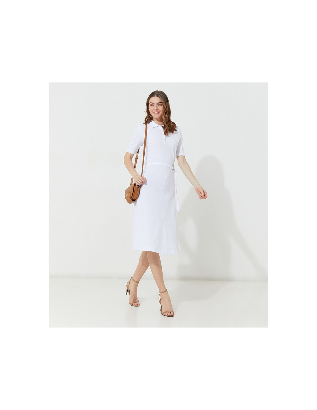 ROBE MIDI TYPE POLO AVEC CEINTURE BLANCHE