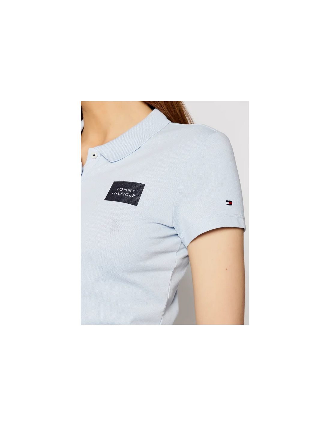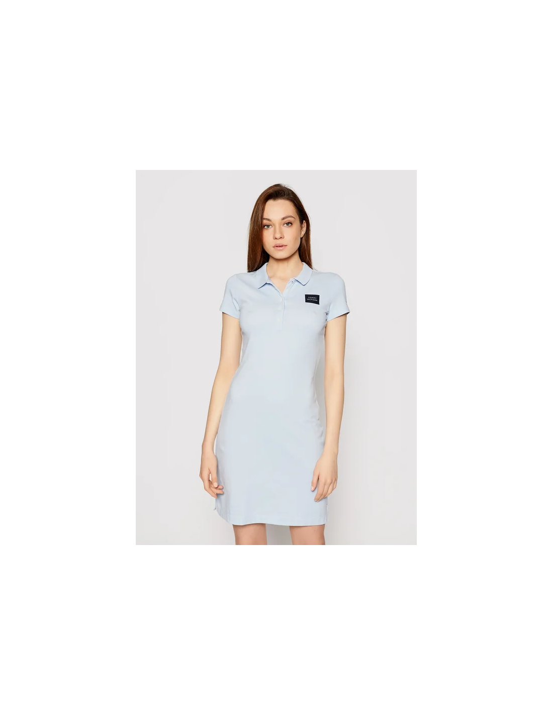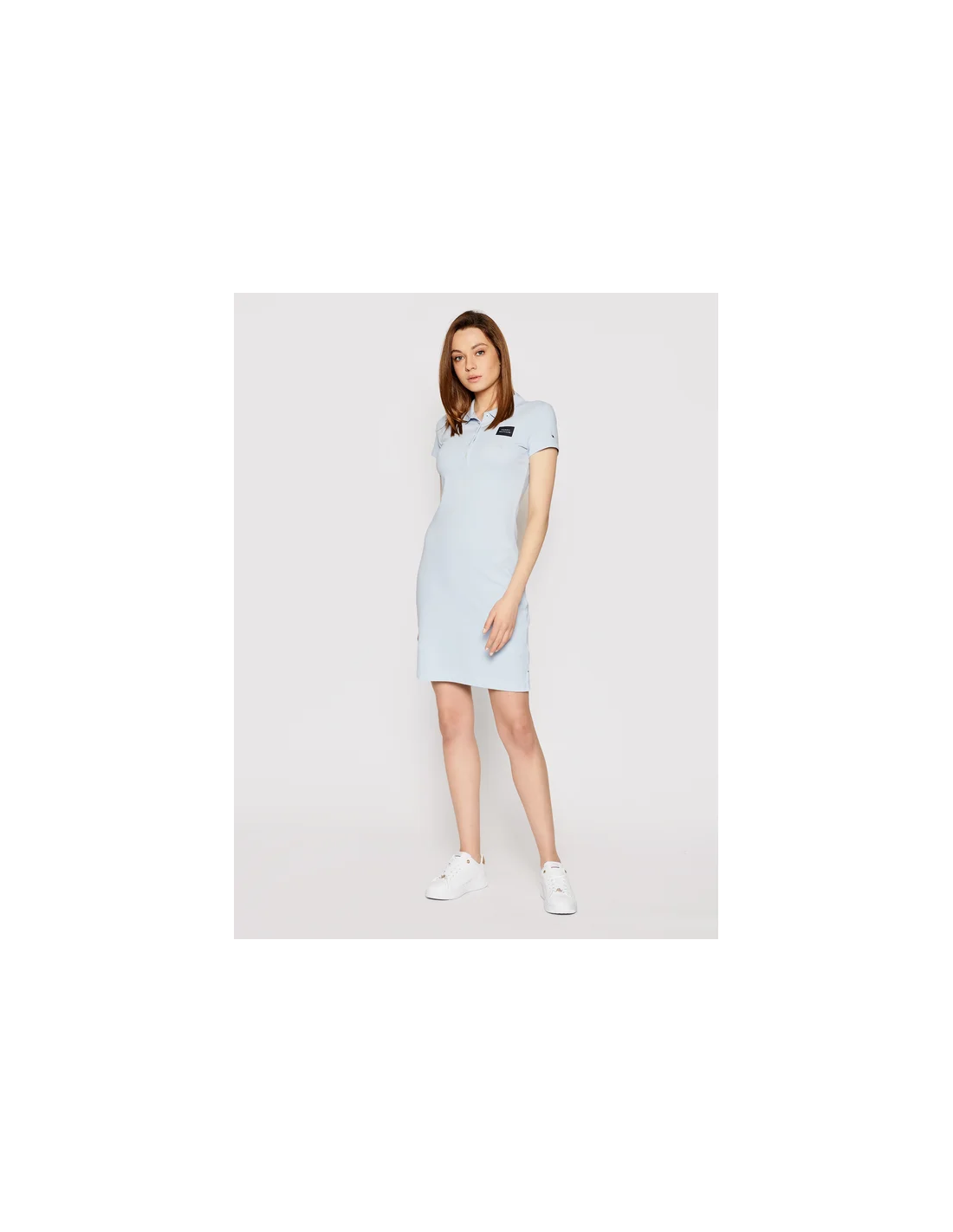 Robe Polo courte bleue ciel. Drapeau de la marque sur la manche gauche