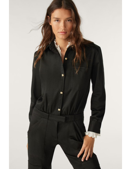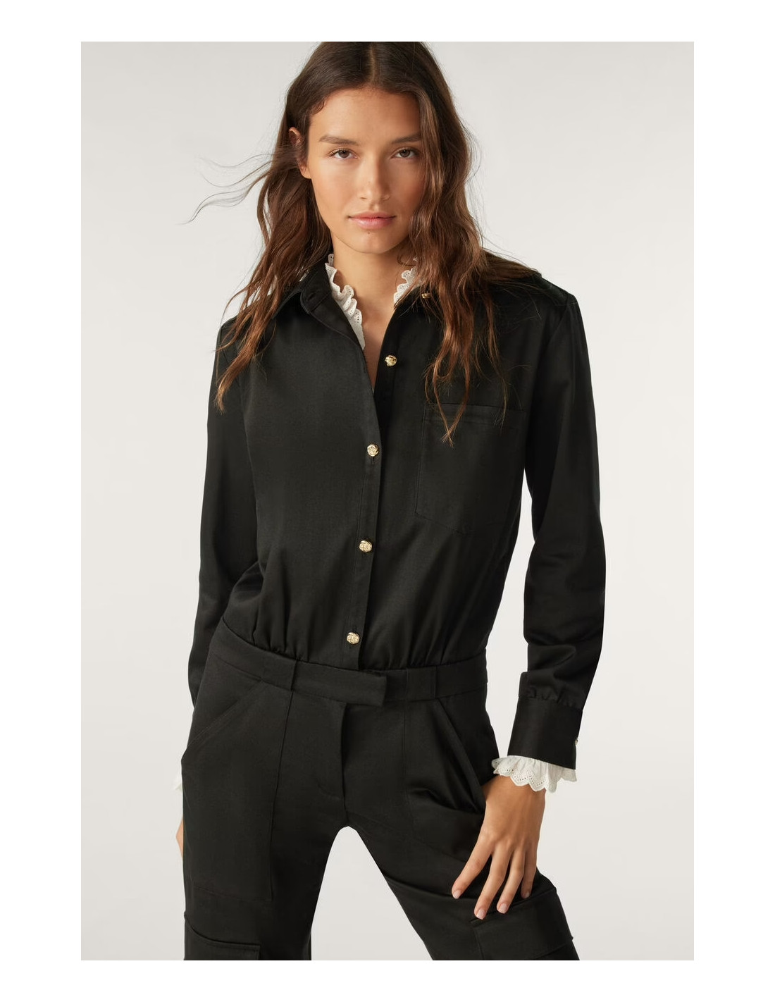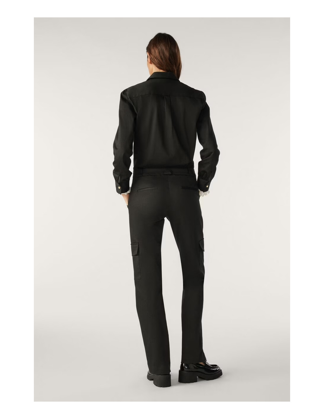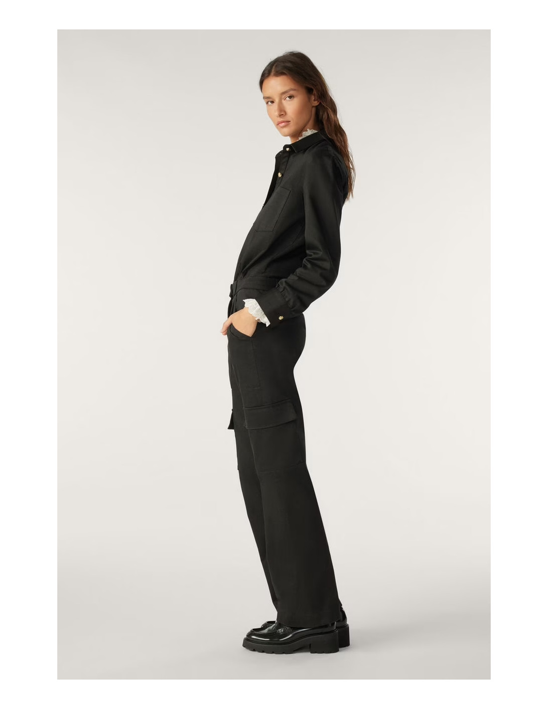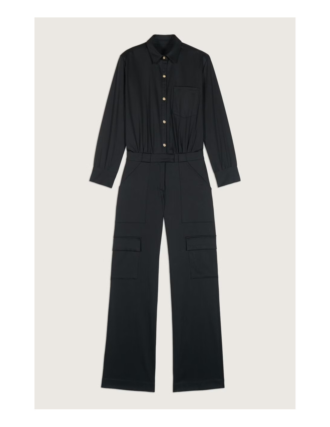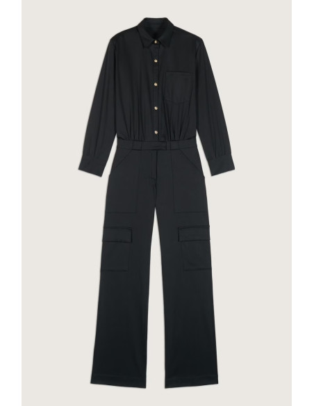 Combinaison chic et élégant. Coupe droite, marquée à la taille, elle est confortable et n'entrave pas les mouvements. Manches longues et col chemise, elle se boutonne à l'avant très simplement. Plein de poches qui permettent de glisser les indispensables à l'intérieur. A matcher avec une paire de bottines ou des escarpins pour twister son style masculin.