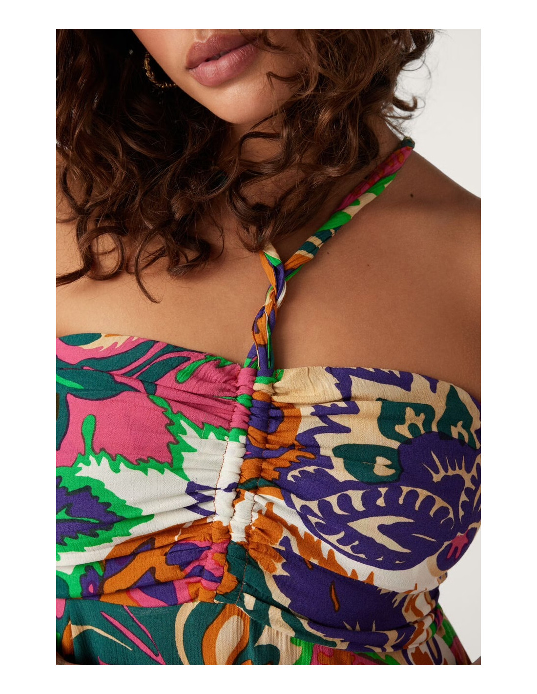 La robe NOUR est un modèle maxi, qui sera parfait pour sortir, ou pour les vacances. Modèle bustier avec détails, les bretelles sont twistées et nouées au milieu à l'avant. Elle est ouverte sur le côté et des pinces sont placées à l'avant. Le zip de ferme dans le dos et est très facile à utiliser. On adore la coulisse ajustable au niveau du bustier qui crée des fronces et permet un ajustement parfait ! A matcher avec des sandales pour un look sublime !