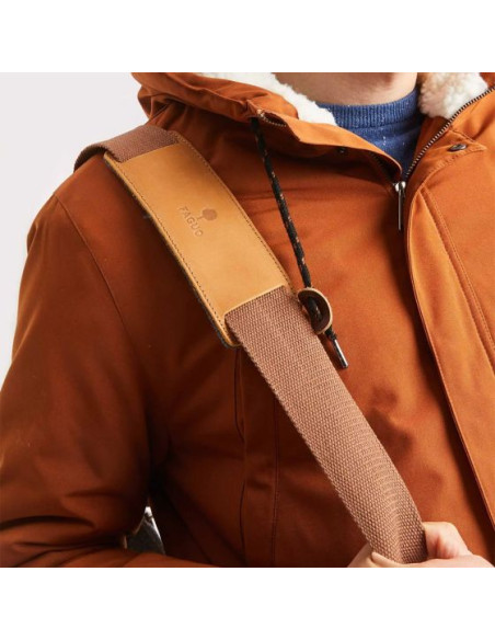 Poignée de portage main et sangle en toile amovible pour un porté en bandoulière.
