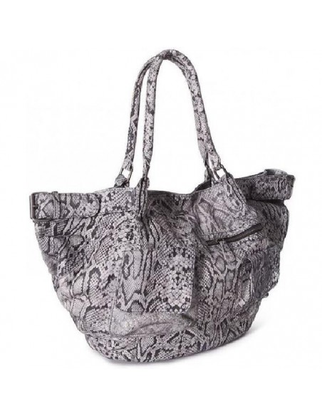 Sac XXL en Cuir façon "Snake" couleur Asphalte.