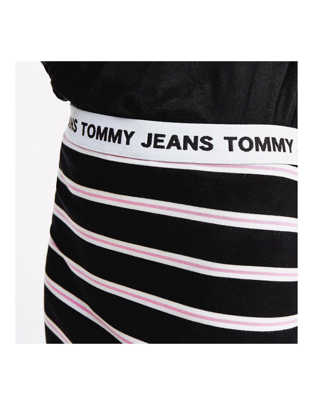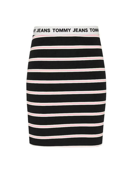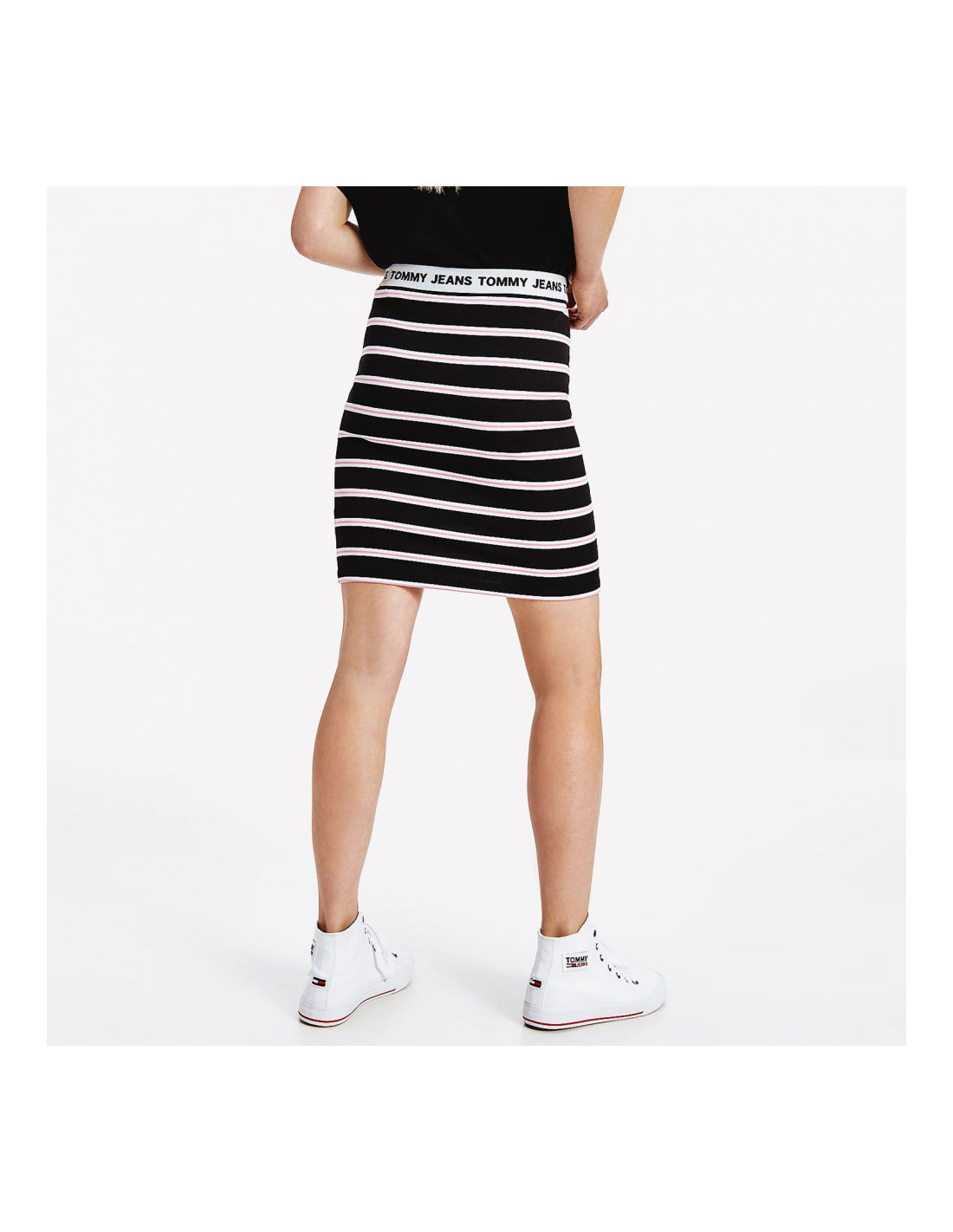 Cette mini jupe allie sportivité et féminité grâce au motif rayé et à la coupe ajustée. Portez-la de jour comme de nuit et montrez votre côté féminin avec une jupe qui met en valeur votre silhouette tout en vous gardant à l'aise grâce à son élasticité. Modèle moulant à rayures. Couleur noir, rose et blanc. Tissu en maille Roma. Mélange de viscose extensible. Taille élastique avec logo. Coupe ajustée.
