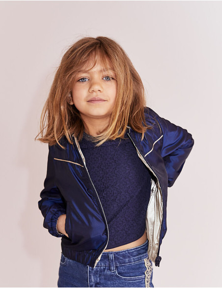Pièce iconique du style College, le bomber squatte le dressing des little girls. Broderie 'Stay groovy' sur la poitrine, broderies patin à roulettes et Campus team California au dos, il est réversible pour défendre sa team !<
