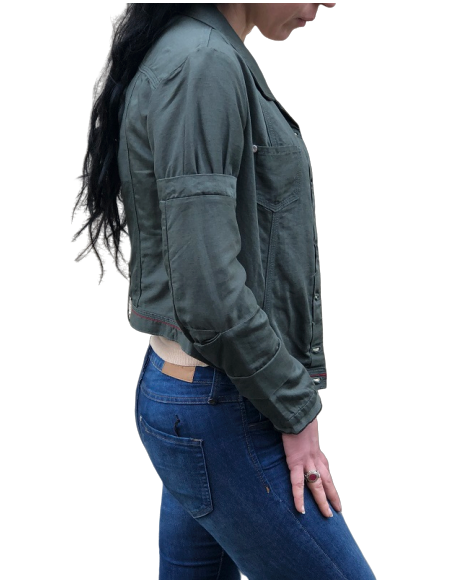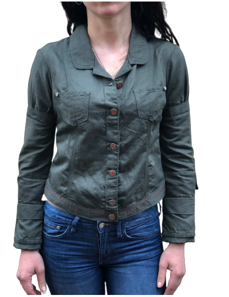 Blouson fait artisanalement. Variation de couleur, rayures apparence vieillie , rupture de trame et effilochage sont intrinsèques au vêtement. les éventuelles décolorations et éclaircissement sont intentionnelles et souhaités. finition et traitements sont faits à la main. porter le avec fierté.