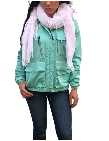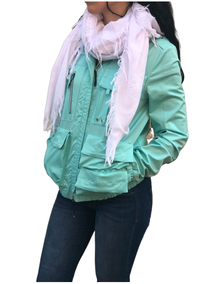 Lorsque les nuages pointent le bout de leur nez et que la pluie n'est plus très loin, mieux vaut sortir avec un bon coupe-vent ! L'indémodable se pare d'une couleur verte pour vous protéger tout en gardant de l'allure. Un produit polyvalent que l'on doit à Versace. 4 poches sur le devant dont une zippé en haut à droite et 2 poches sur les cotés.Manches avec bords élastiques, base arrondie. revêtement imperméable durable. fabriqué en Italie